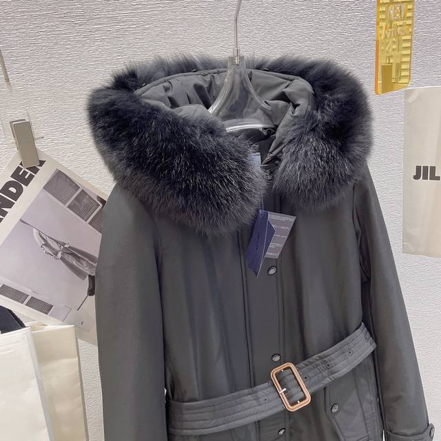 Triangle Mark 3 Winter New Long Down Jacket/Coat with Imported Fox Fur Warm Large Fur Collar Hooded Slim Waist Down Jacket DDD: DDD: Black Khaki DDD