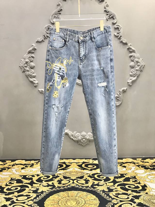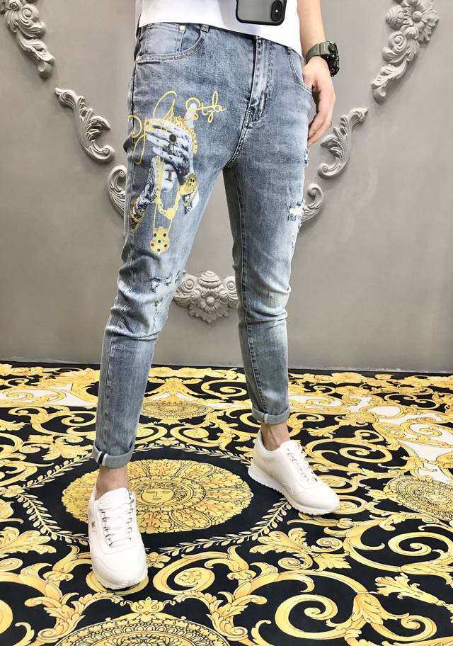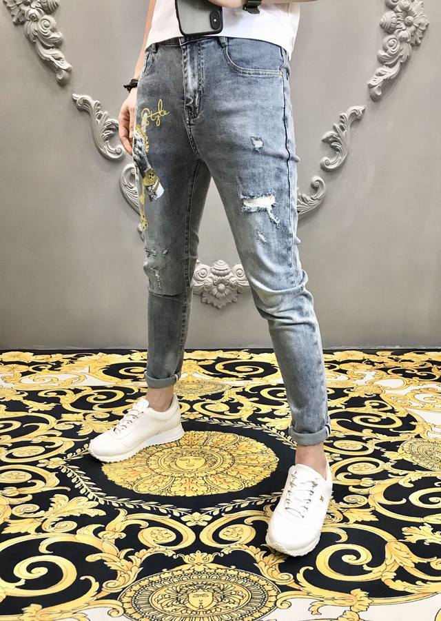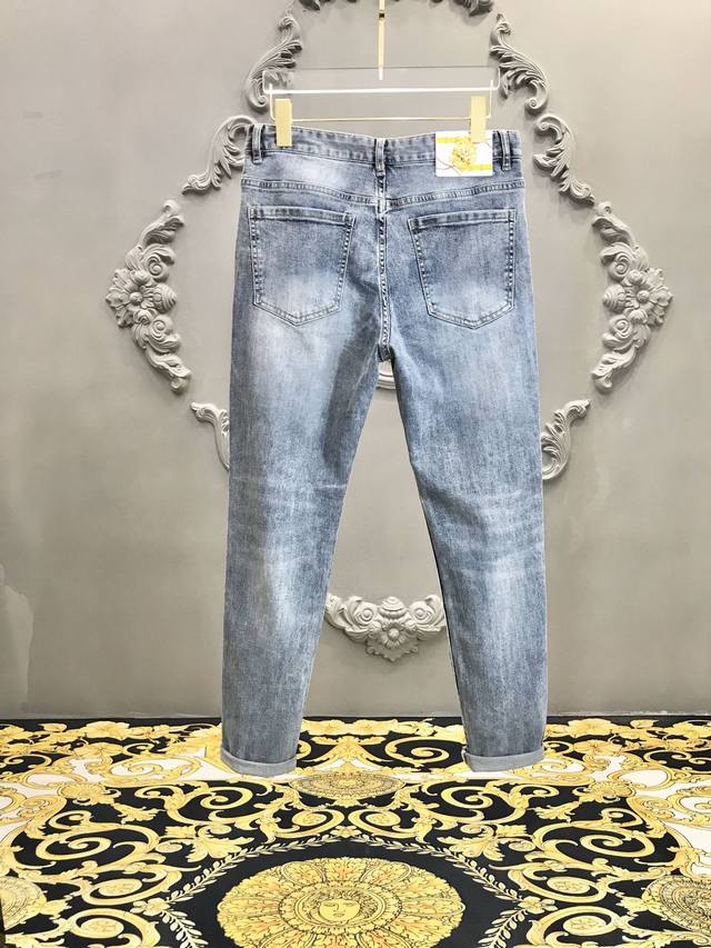 Ver*Sace Fanjia's first wave of new jeans for summer 2020. Made with fermented water-rinsed technology, the jeans feature a hot-dye logo on the legs. Made from premium denim, they look very handsome and are a fashionable Hong Kong-style style for men! Sizes: 29-36