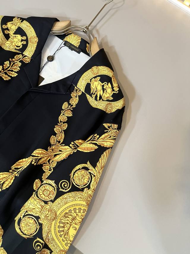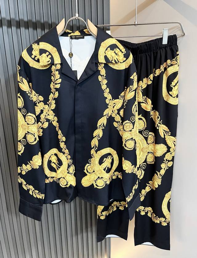 Vers*Ce 2025 Autumn/Winter New Arrival Original Silk Pajama Set. Recommended by Vers*Ce Trading Company. The panoramic printed lettering, floral, and logo patterns are exquisitely detailed, highlighting a gradient effect! Crafted with heavy-duty technology, it boasts a strong three-dimensional effect, only achievable with advanced German equipment, showcasing an unparalleled visually stunning and luxurious look. The craftsmanship is exceptionally high, demonstrating meticulous attention to detail! Made with imported silk fabric, it is incredibly soft against the skin, with impeccable details and a stunning fit. It's eye-catching and guaranteed to turn heads. A perfect piece to elevate your wardrobe, it looks amazing whether worn alone or layered. Sizes: M-5XL DDD