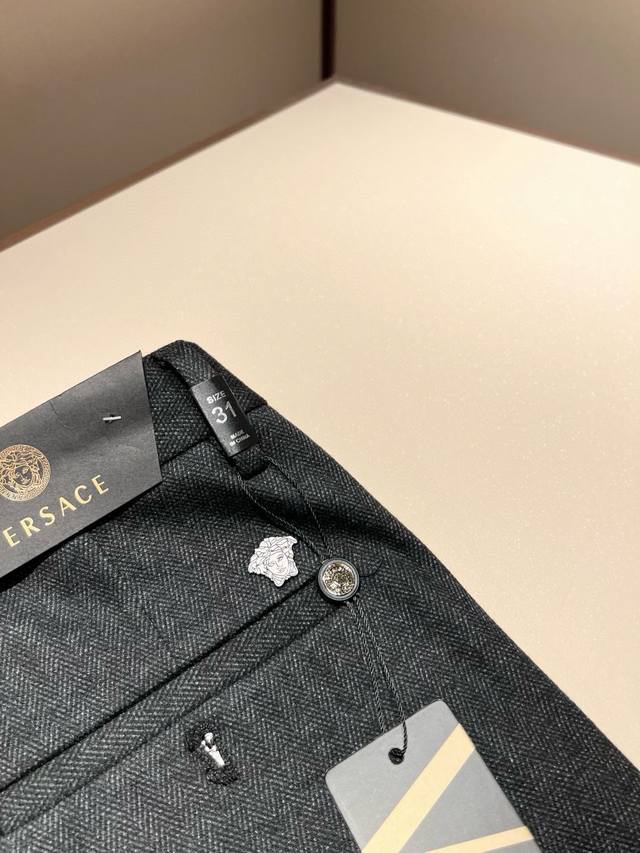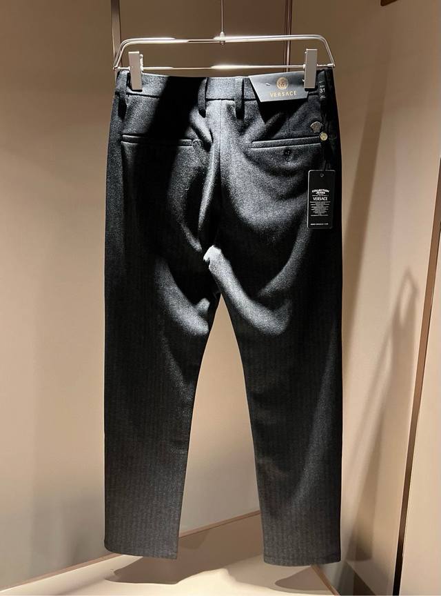 Vers*Ce's new autumn/winter 2025 collection of fashionable and casual cashmere trousers, custom-made with original cashmere fabric! These trousers showcase a natural drape, embodying a sense of ease and elegance. They're more comfortable for everyday wear, and the wrinkle-resistant fabric exudes natural elegance, adding a touch of casual fashion to the overall look! Elegance may be omnipresent, yet it often stumbles upon us unexpectedly. Men's elegance can also be eccentric and elusive, subverting our imaginations. Inclusive and full of surprises, these trousers feature hardware logo accents and accessories! These trousers break with the traditional cut and design of men's trousers, offering a perfect match for all seasons. Perfect details. Sizes: 30-40
