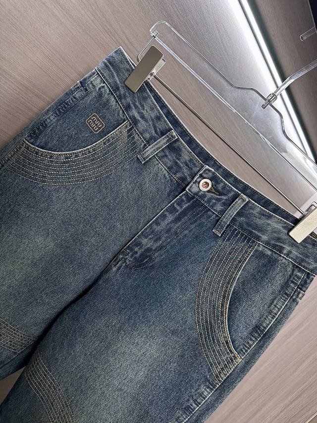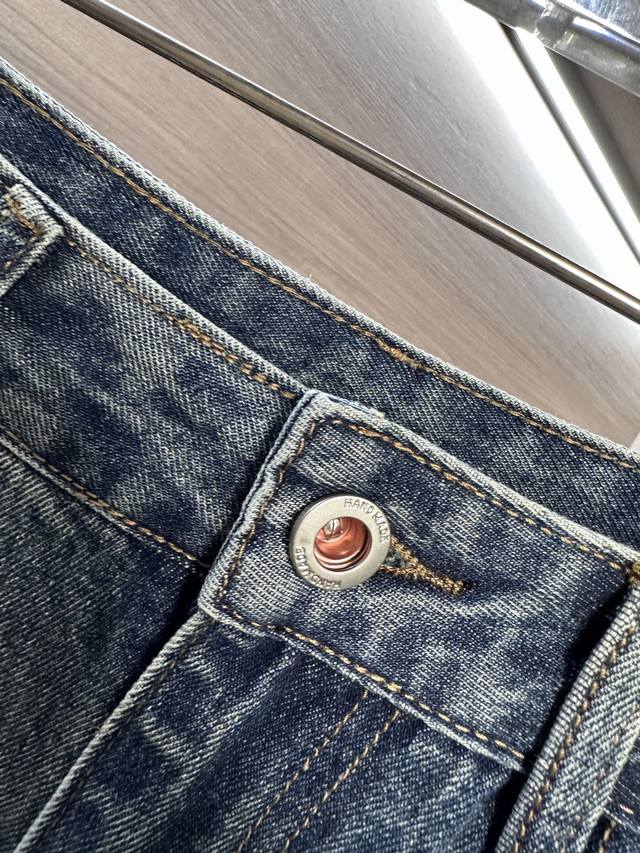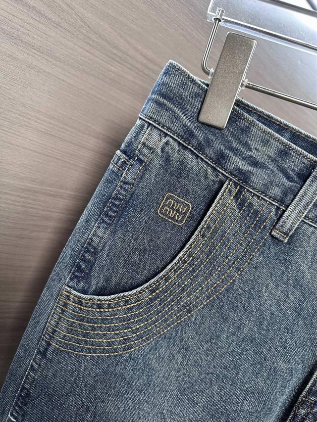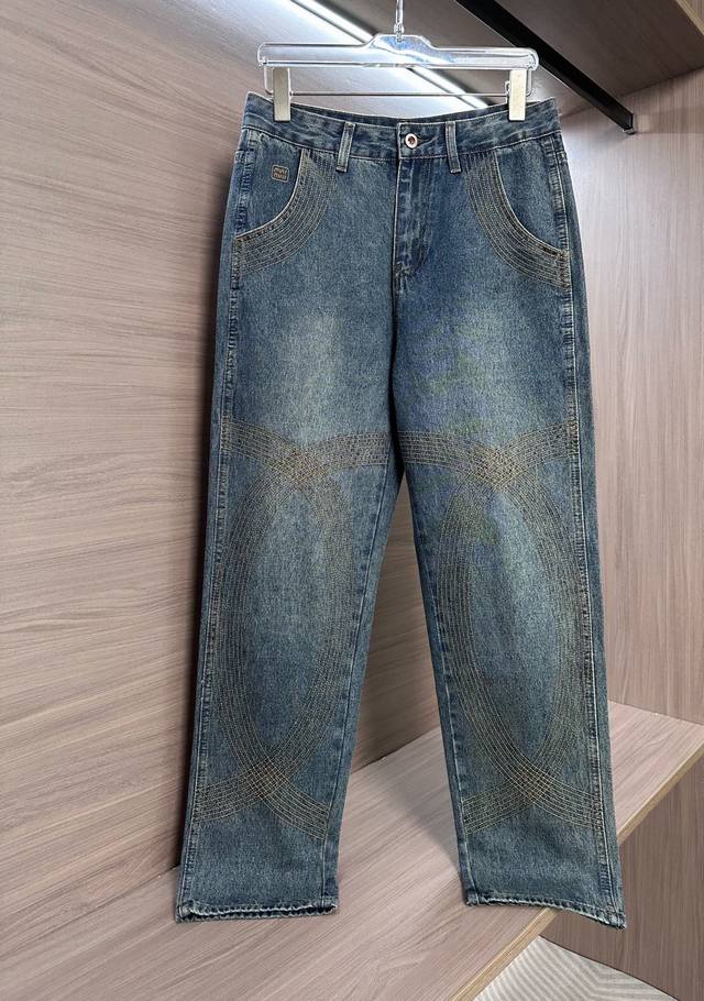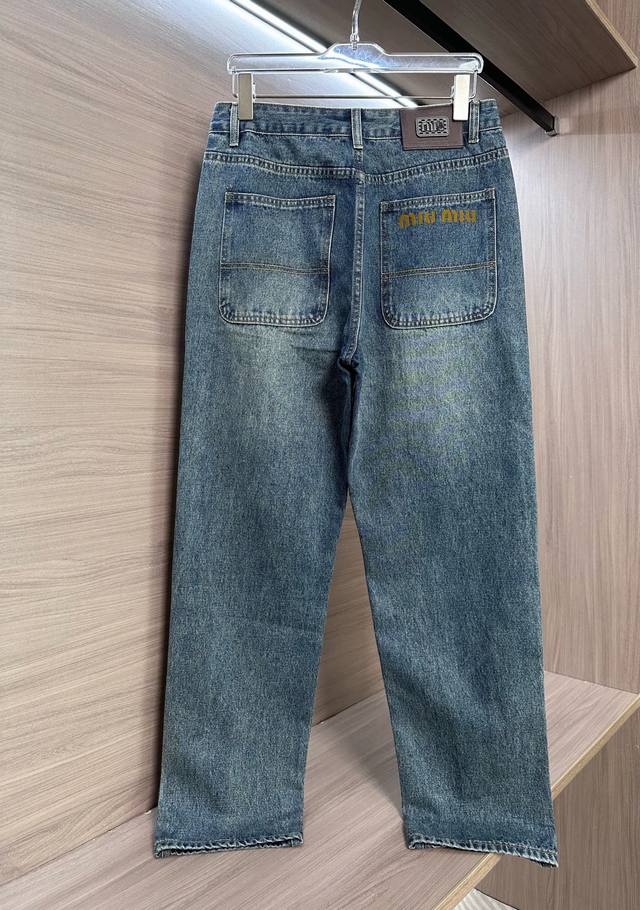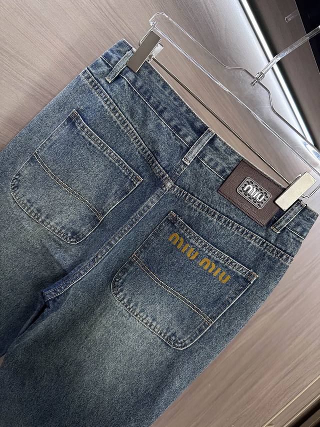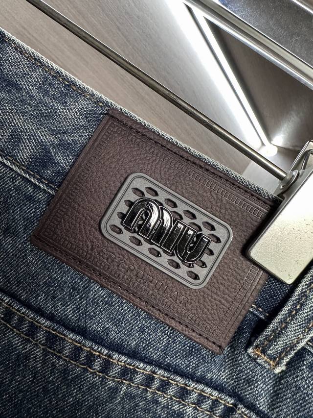 Wide-leg Miumiu 25Ss spring and summer men's fashion trend big trousers jeans, official album poster style! High-end imported denim original color fabric, specially selected pure 13Oz ounces of denim fabric from Okayama, Japan, heavy environmentally friendly plant enzyme washing process, the texture has a light retro color, quite beautiful, very suitable for autumn and winter color matching, the fabric is soft and delicate after washing, but the muscle feeling is very strong, and slightly elastic, providing an excellent comfort experience, there is no process element damage throughout the body, retaining the purest denim color! The details of the whole body are perfect, exquisite and sophisticated, the latest waist leather label highlights the brand characteristics, hardware accessories, leather labels, and stitching all reflect the craftsmanship! The pattern is perfectly tailored, with excellent hip-lifting and slimming effects. It can be easily matched with any top in the wardrobe. It is widely compatible and meets various daily wear styles. The upper body shape is full