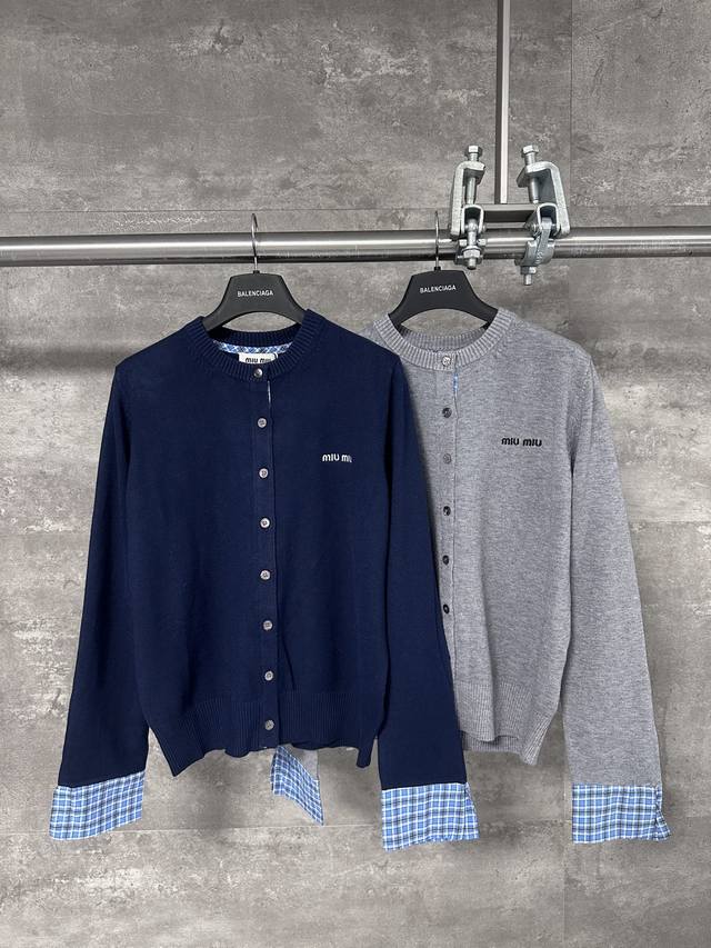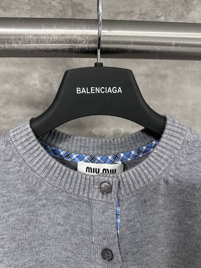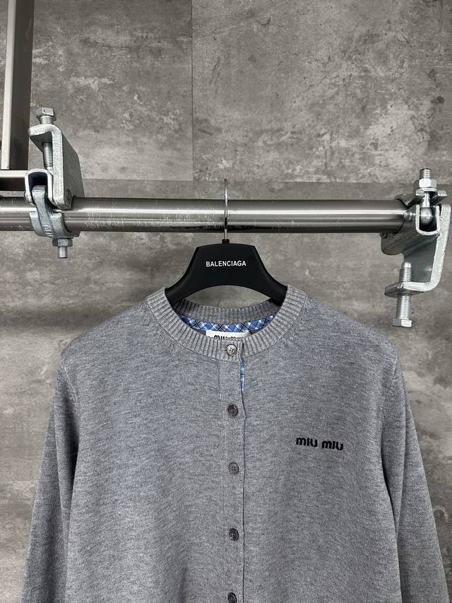 Women's Miu Miu 2025 new knitted plaid contrasting color round neck cardigan sweater jacket!