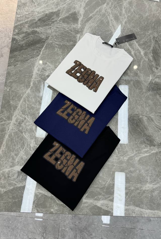 Z Zeng Zegna 25S New Letter Modal T-Shirt. A refreshed and upgraded versatile basic style, produced by a trading company! Made from premium organic G Modal cotton fabric, breathable, comfortable, strong, and durable. Features a 3D foam heat-printed Zenga logo on the chest, showcasing a new micro-logo design. A fitted cut to express urban style. Colors: Black, White, Dark Blue. Sizes: M-3XL (slim fit). S and 4XL are available for custom orders. For someone 175cm tall and weighing 140kg, L is recommended.