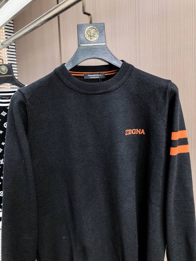 Zegna 2025 Autumn/Winter New Wool Sweater. High-quality Italian imported wool blend fabric, high-density knit, fashionable and versatile sweater, exuding a cool and stylish vibe. The classic logo makes it more durable and less prone to deformation. A boutique fit, easily complementing various styles. A classic fashion piece that has been sought after year and is popular worldwide! Sizes: M-3XL. Please provide your height and weight when ordering.