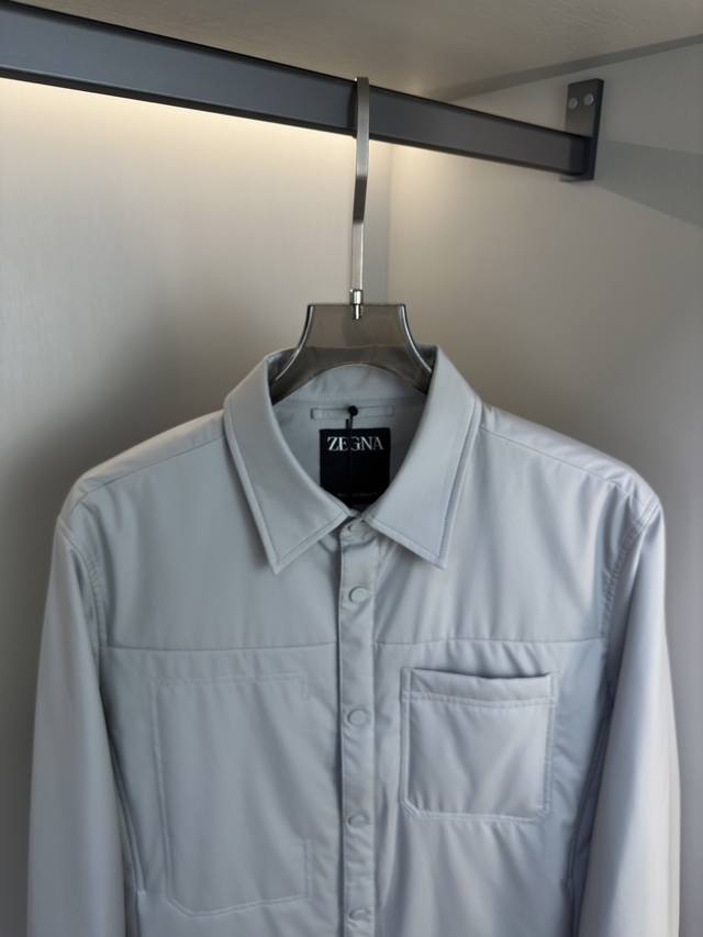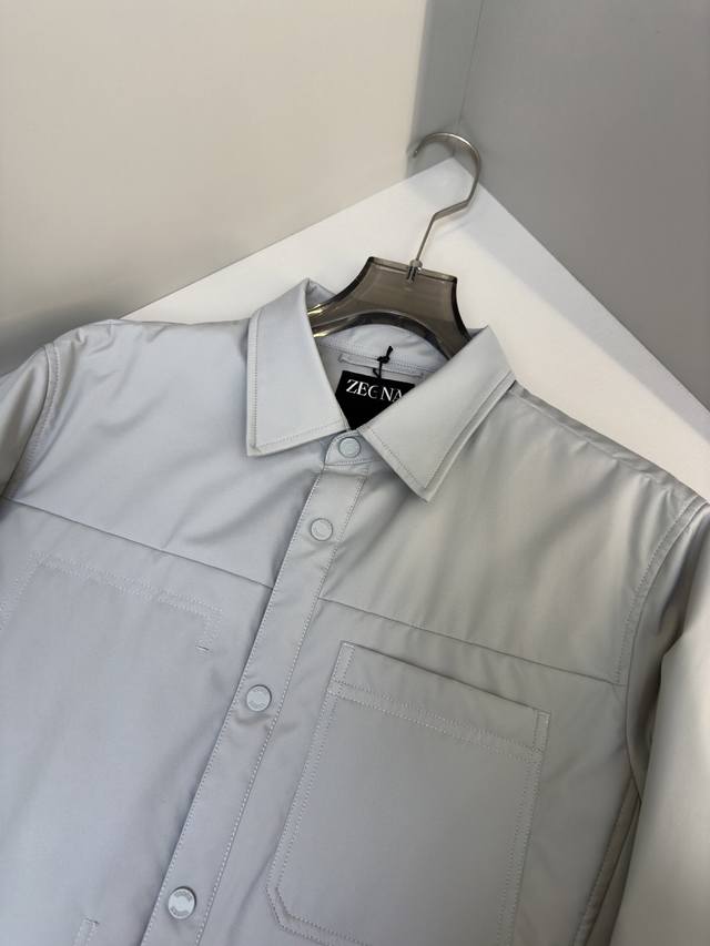 This Zegna jacket features a classic shirt silhouette with a simple, sleek lapel design that frames the neck and adds a sharp, refined look. The lapel also provides some protection from the elements, providing warmth and comfort.