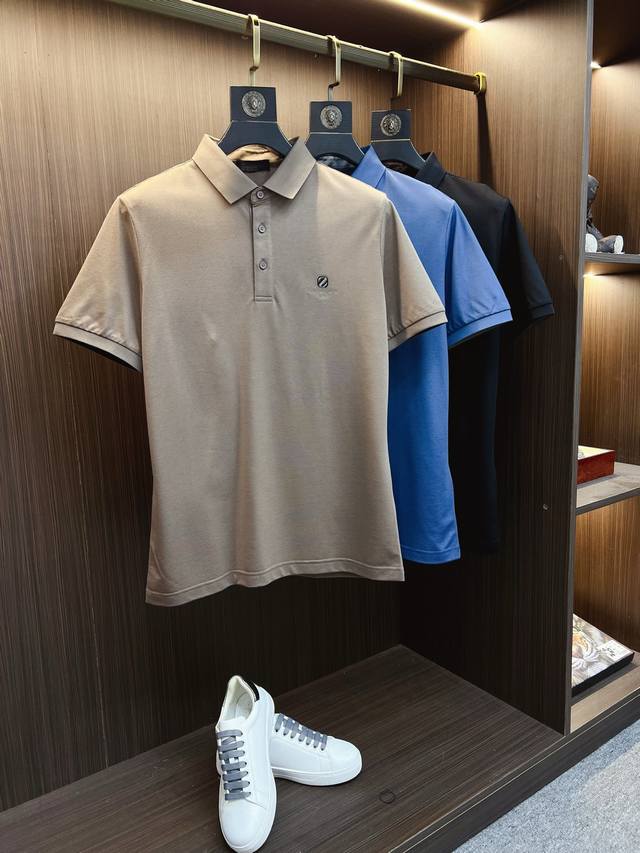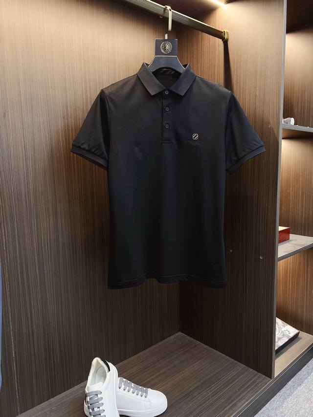 Zegna premium embroidered logo, 2025Ss new fashionable collared short-sleeved polot shirt, original replica, customer-supplied original imported mercerized cotton fabric, original replica classic brand logo, perfect cut, exquisite workmanship, a must-have item! Sizes: M-4XL DDD