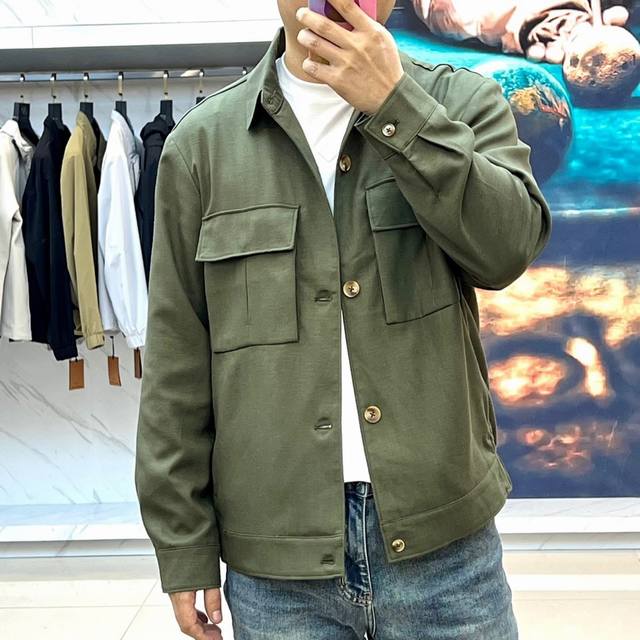 Zegna, Spring/Summer 2025 new arrival: a blended, composite, three-dimensional pocket shirt jacket. This business-casual men's jacket features a lapel design, custom-made imported fabrics with original hardware. This imported technical fabric is exceptionally soft, comfortable, and breathable, boasting a textured feel distinct from nylon. The lightweight, soft, and breathable nylon fabric is incredibly smooth and creates a comfortable, lightweight feel. Custom-made natural horn buttons and a tailored, slim fit are featured. This new men's technical fabric jacket is the king of fabrics, crafted from tear-resistant nylon with a uniquely textured, pleated effect. It's lightweight, comfortable, and breathable, offering a stylish and casual feel. The overall look is refined, simple yet effortless, making it a versatile piece suitable for year-round wear. Practical yet stylish, this jacket is a timeless classic that's sure to last. Recommended! Model 48-56, 173cm tall, 143lbs, wearing a size 50