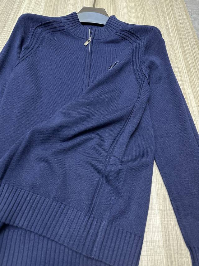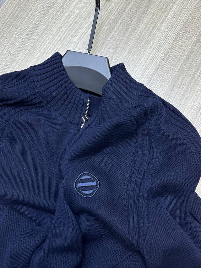 Zegna's Autumn/Winter 2025 men's full-zip cardigan sweater features a traditional straight-cut silhouette with a full zipper closure. The clean, minimalist stand-up collar provides excellent stretch and comfort, naturally accentuating the figure without appearing overweight. The exquisite metal zipper pull adds a touch of high-quality detail, creating a simple, elegant, and versatile look. This stylish jacket can be worn as a jacket, layering over a solid shirt or T-shirt, or over a coat or down jacket. It's perfect for both business and casual wear, creating a stylish and chic look with any outfit. It offers excellent warmth, an extremely soft and comfortable feel, and a comfortable, snug fit. It also drapes beautifully and resists pilling or losing its shape even after repeated washing. Sizes: M-Xxl