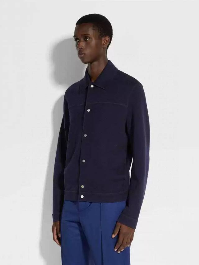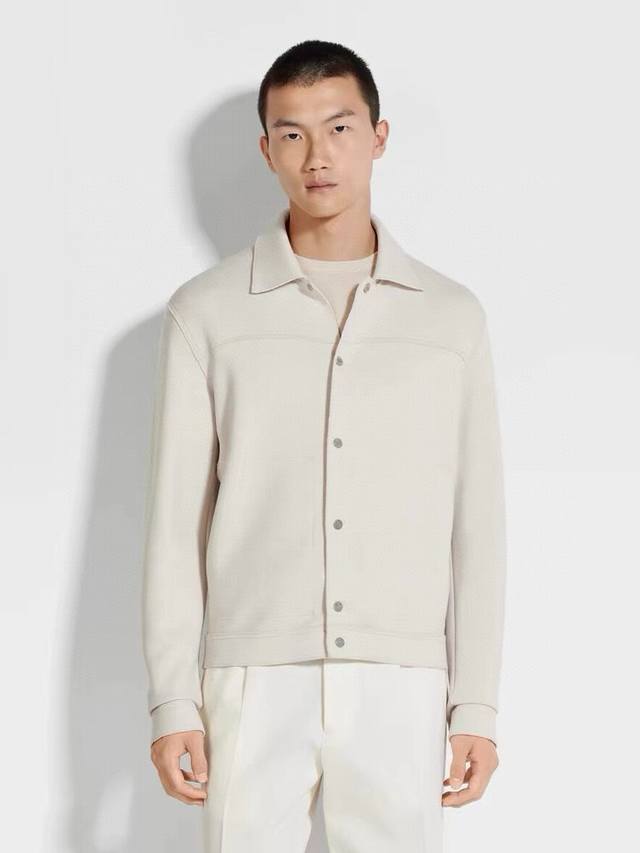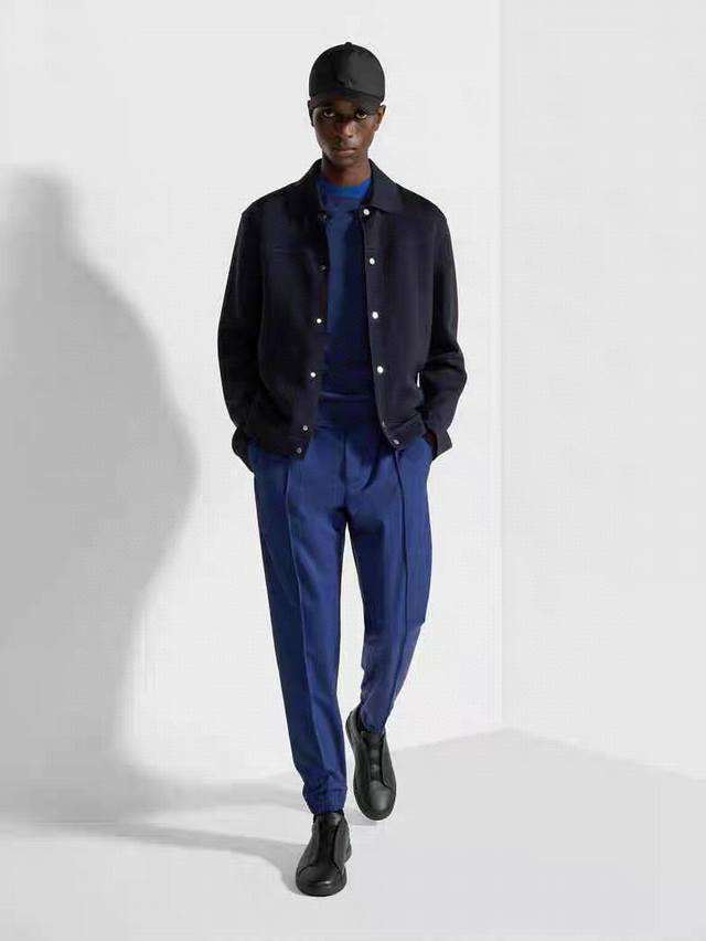 Zegna's latest men's all-wool lapel jacket for Fall/Winter 2025 features a snap-button, fully-opened cropped jacket style. Crafted from carefully selected German worsted wool, the jacket features no overt logo embellishment. The sophisticated lapel design echoes the iconic double-bar embroidery on the back. While seemingly simple and understated, it exudes a high-end, designer flair. High-precision double-layer thread cuffs and hem, accented by metallic snaps, create a premium feel. The meticulously crafted hardware details create an impeccable finish. Its clean lines and simple silhouette make it a perfect match for both business and casual wear. It's timeless and versatile, and can be paired with any outfit to create the look of an urban elite.