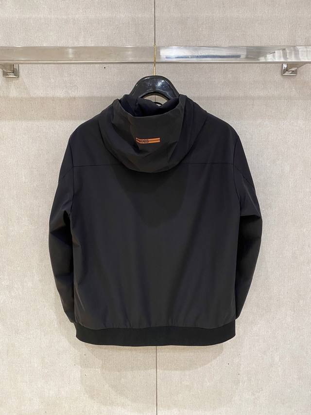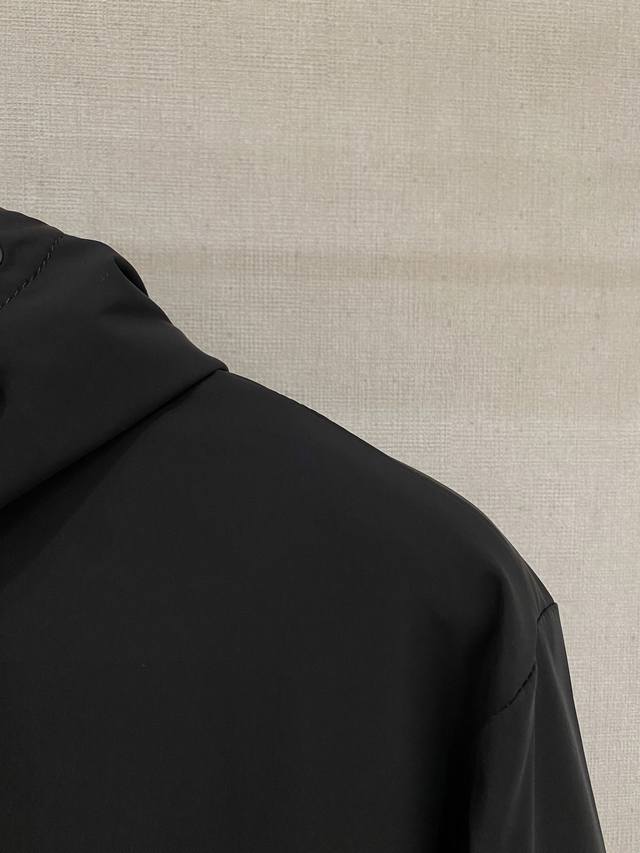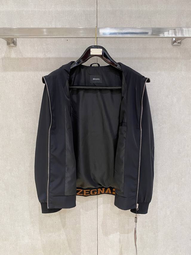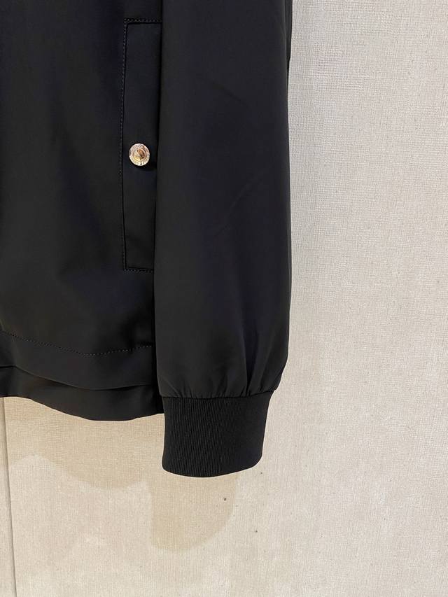 casual jacket is made from a custom-made nylon, polyester, and cotton blend, featuring a machine-knitted fine point knit. The texture is clearly defined, soft, smooth, and breathable. Contrast-colored stitching creates a relaxed, effortless feel and adds a touch of sporty casualness. The interior features impeccable seams and classic contrasting threading for a high-street chic look.