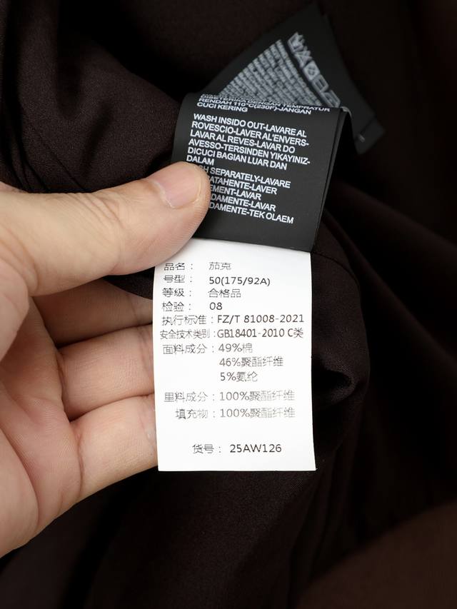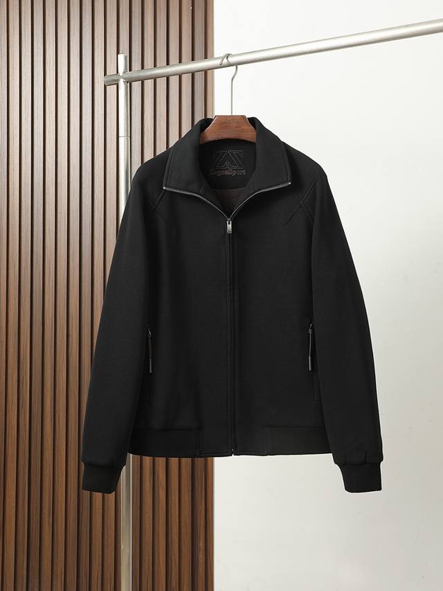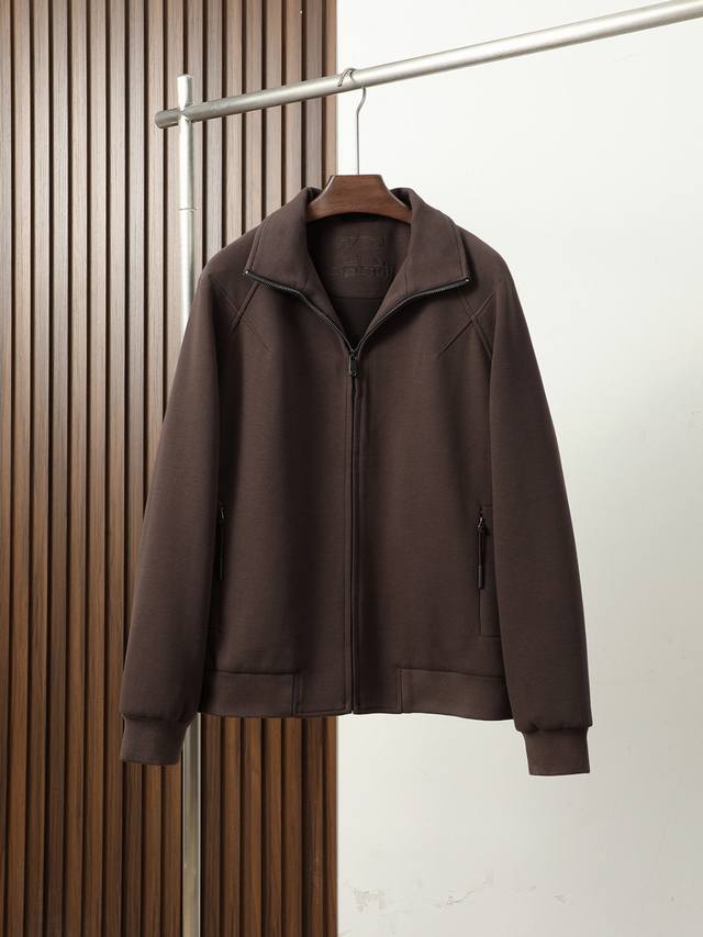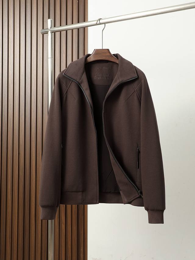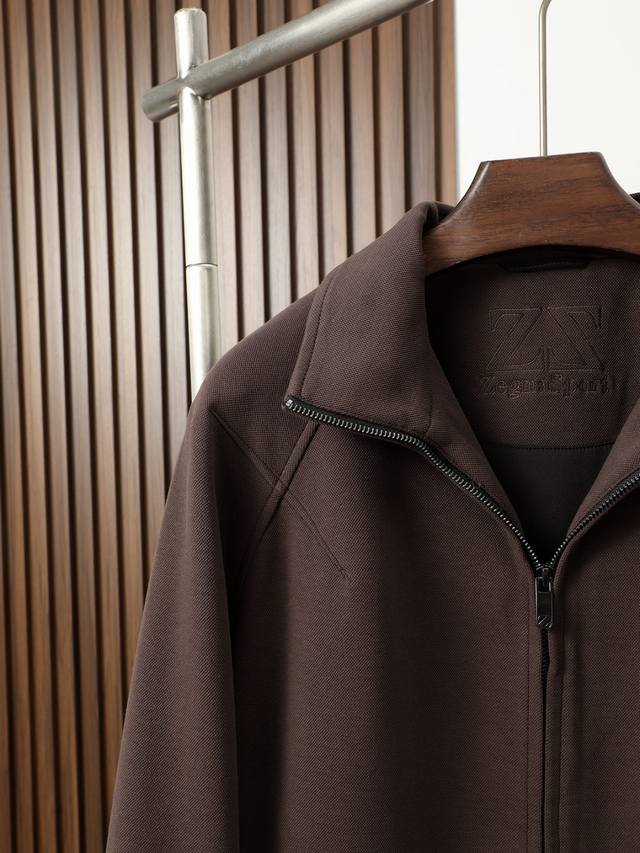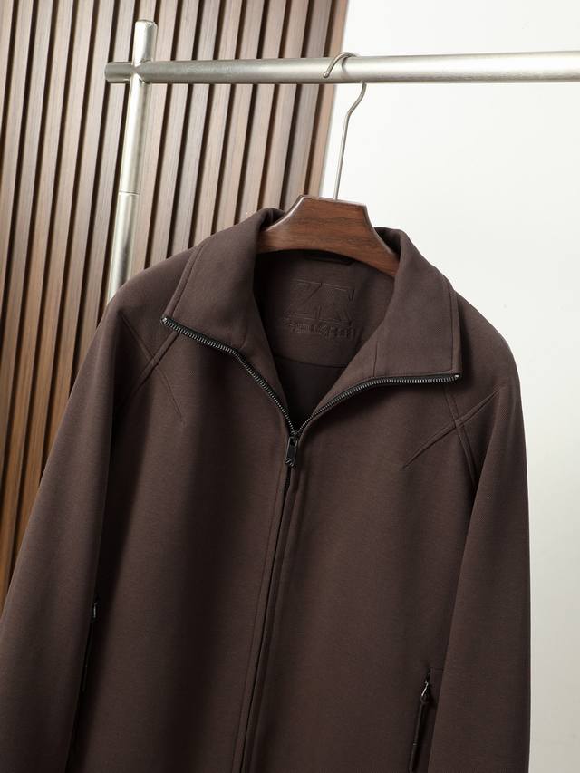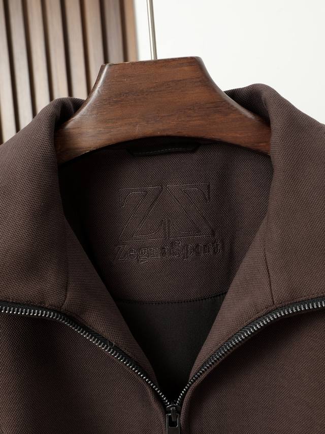 men's spring/summer 2025Fw collection features a stand-up collar design, maintaining a stylish look while offering some protection from the elements. The inner collar features a brand label with "Zegna" printed on it, highlighting the brand's identity and the "High Perfo" design, hinting at the jacket's high-performance fabric. The