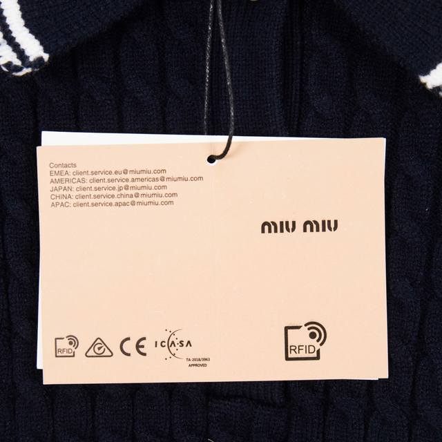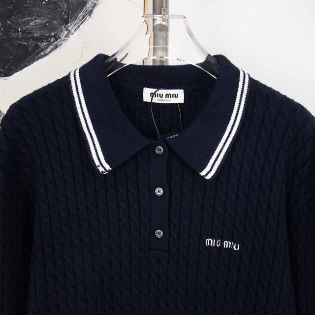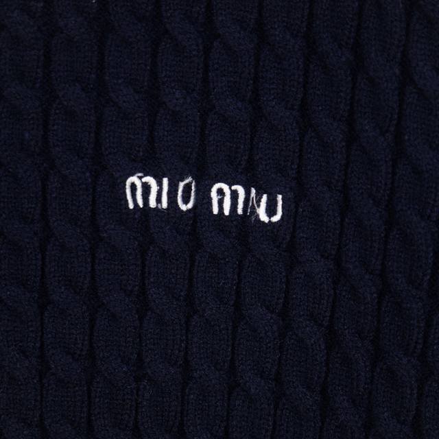Craftsmanship: Embroidery features 3D stitching and the Miu Miu signature embroidery. Knitted on imported 7-gauge machines, the garment features a cable knit design.