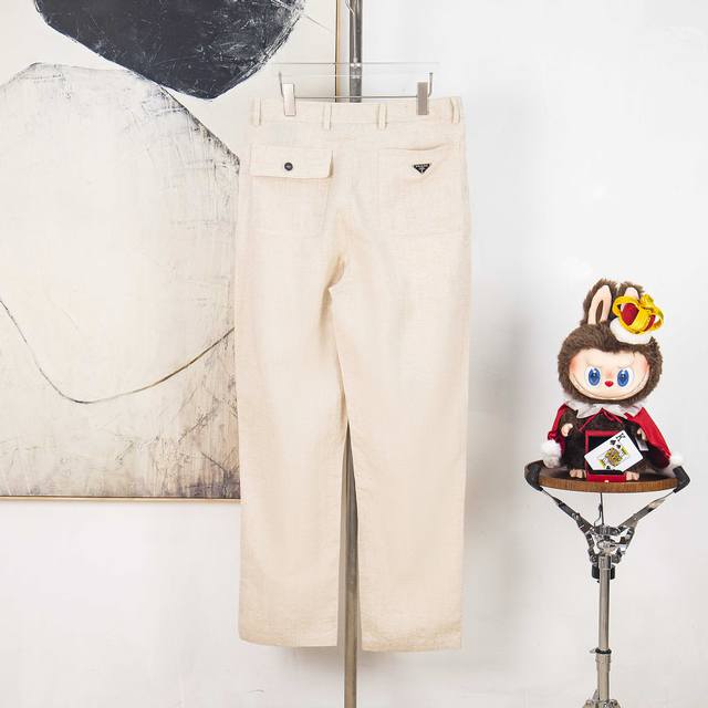 Zp Version [Exclusive] Prada Pocket Steel Logo Tencel Linen Cotton Trousers Fabr