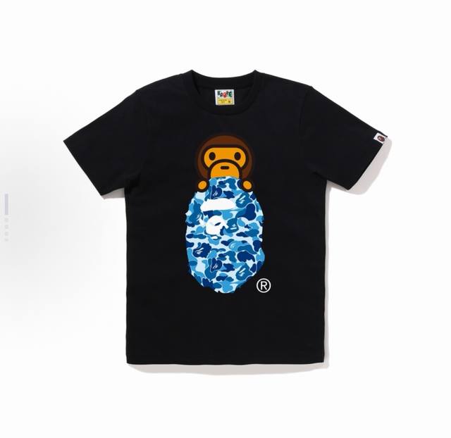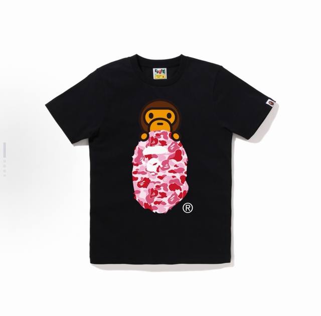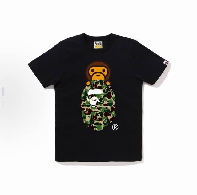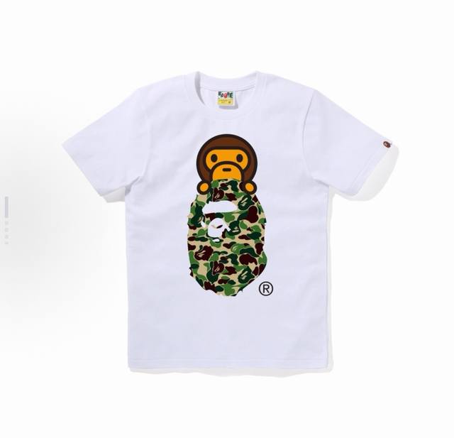 001191 A Bathing Ape Fw24 camouflage ape cartoon short-sleeved T-shirt for men and women, available in sizes Smlxlxxl (black and green, black and blue, black and pink, white and green, white and blue, and white and pink).