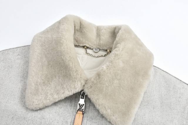 . Originally purchased for 34,600. Made of 100% imported sheep's wool blend fabric with custom-dyed gray yarn. The detachable fur collar is made of lamb's wool, silky and skin-friendly. The design is quite unique, with a distinctive construction and visual contrast between the two materials, creating an unparalleled luxurious and sophisticated look, showcasing fashion aesthetics to the fullest. The lining uses rayon fabric combined with 1800D quilting, featuring full-width Monogram Craggy pattern quilting, with aligned quilting and imported cotton-lined machine positioning to increase the overall texture and secure the filling. The logo on the chest is embossed with high temperature. The back leather patch is made of cowhide embossed leather and hand-stitched. Custom-made size 5 leather cord zipper, color-matched and custom-dyed wool ribbed elastic cuffs and hem, ensuring the entire cotton-padded coat looks exquisite and stylish. All three labels and accessories are included. Comfort and softness are top-notch, with a double-layered insulation structure providing extremely high cold protection. Its unique properties allow it to easily withstand harsh weather conditions such as wind, rain, and snow, making it highly practical. Every detail showcases meticulous craftsmanship, impeccable and different from other versions on the market. Size: S-XL