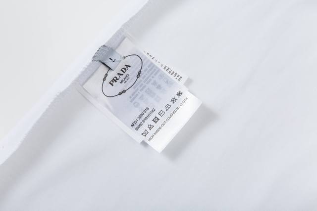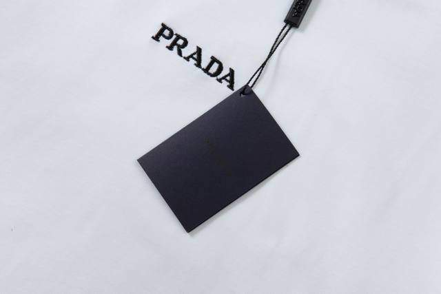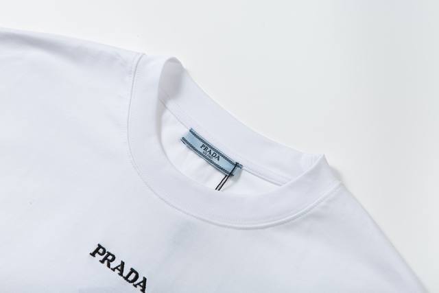 1203, high-end custom-made, exclusive top-quality version of the Pra* logo embroidered crew neck short-sleeved T-shirt. Made with exclusive custom-made 290g original 1:1 double-ply double-yarn pure cotton fabric, custom-woven and dyed in the same batch with no color difference in the ribbing. Custom-made 1:1 accessories, complete with labels, oversized loose fit, exquisite and perfect workmanship, soft and comfortable fabric that does not deform. Unisex style, different from other versions on the market. Specializing in high-end, top-quality goods. Welcome to compare quality. Sizes: Xs, S, M, L. Colors: Black, White.