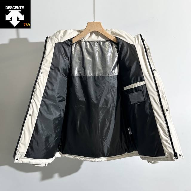2025 Hottest Descente Down Jacket, Unisex, Couple Style. Top-quality white duck down filling, a true winter wonder. A simple base layer is enough to ward off the cold. Suitable for both men and women. The logo is a short style. A down jacket that will never go out of fashion this winter. Top-quality original fabric: Exclusive domestic factory fabric with characteristics: waterproof, down-proof, colorfast, 24-count calendered woolen fabric! Ddd Inner Lining: 400D high-density lining fabric, completely eliminating down leakage and other phenomena. Ddd This year's highest version on the market, all details are exactly as described, all fabrics and hardware are original molds, and the down filling is absolutely top-notch, all national standard 80% down, unlike duck silk versions on the market. 715+ fill power, double-layer lining fabric, absolutely no down leakage. Ddd Colors: Off-white, Black DDD DDD DDD