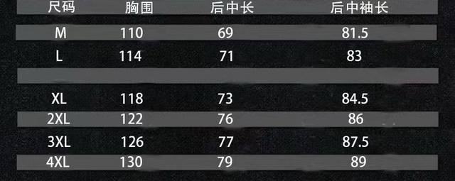 4Xl Length 77 Bust 130 Sleeve Length 91 Approximately 185-205 catties