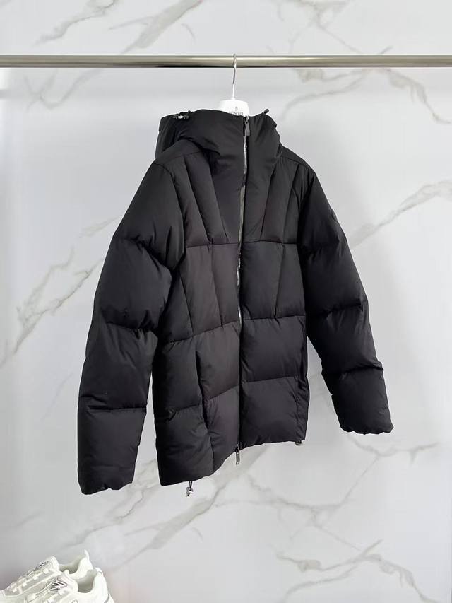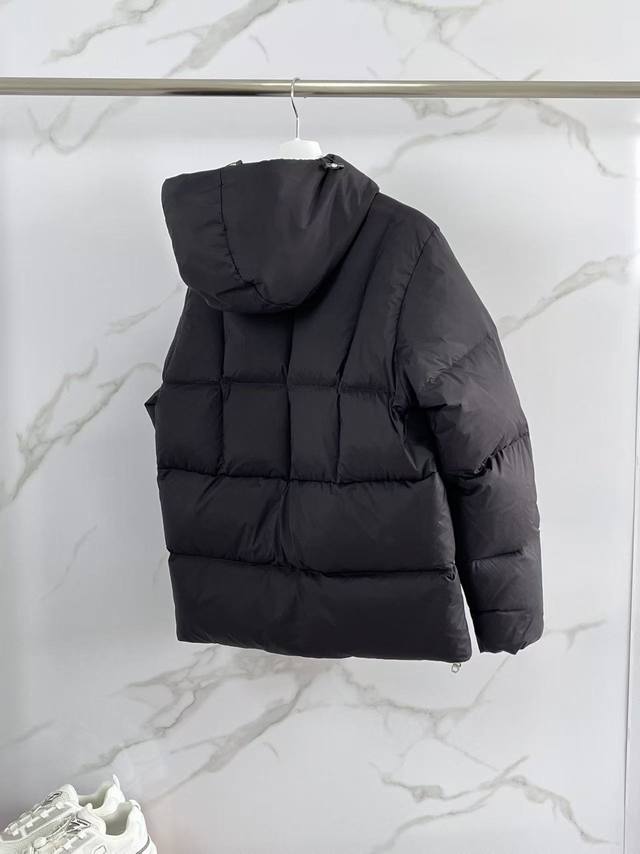 2025 Winter New Fusain Short Down Jacket. Inspired by the thrill of motorsports, this jacket echoes the three-dimensional tailoring and dynamic structure of racing driver uniforms. A diamond-quilted design creates a warm barrier, while the lightweight fabric packs a puffy warmth. The clean, non-bulky silhouette and hooded design add a touch of casualness. Made from quilted nylon fabric, it offers excellent warmth and protection. It's a sophisticated armor against the cold wind during commutes, and a stylish tool for creating a minimalist, high-end look. In the depths of winter, a single down jacket allows you to effortlessly achieve both warmth and elegance. The short design with a reflective zipper showcases a modern style. Sizes: 12345 Colors: Black, Off-white, Gray