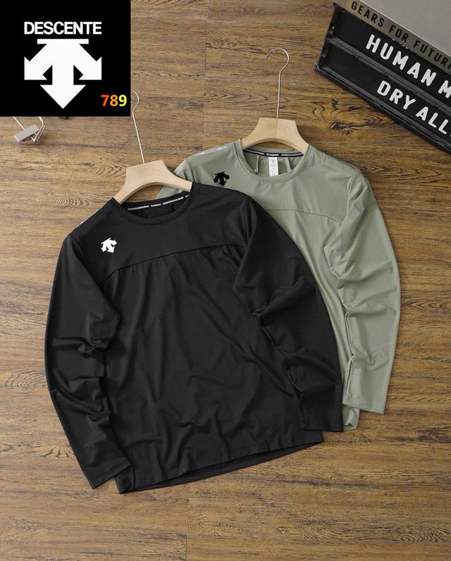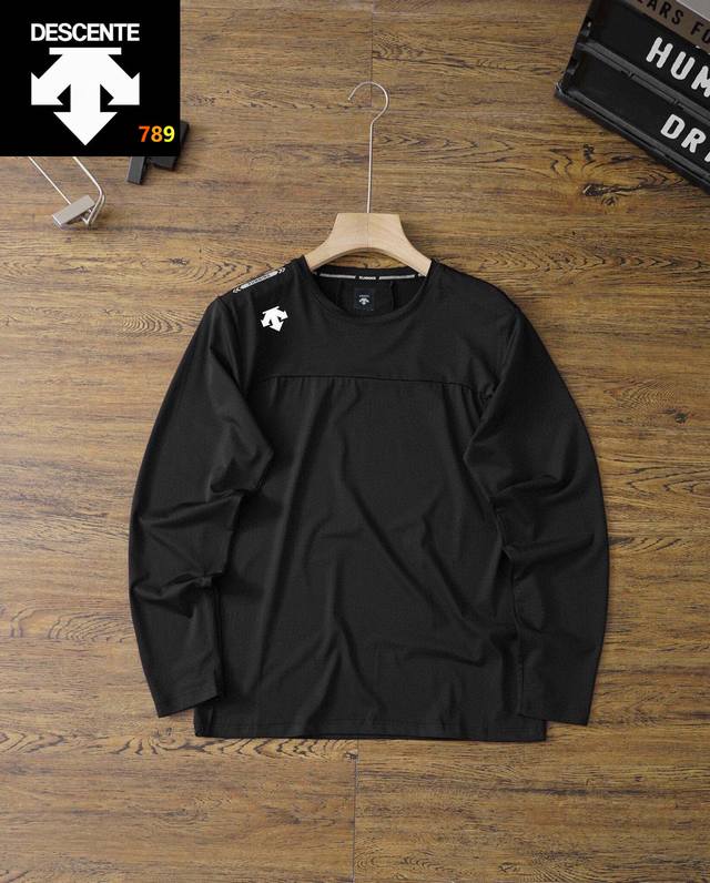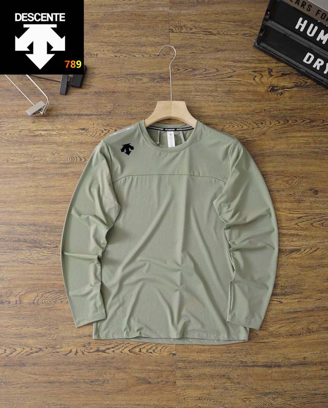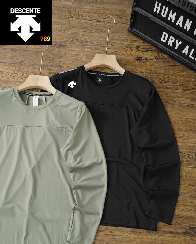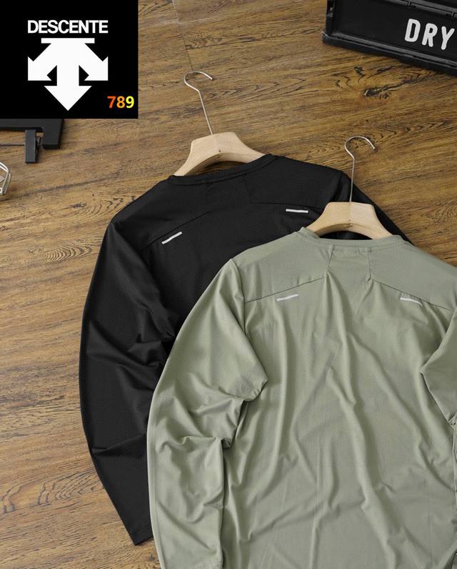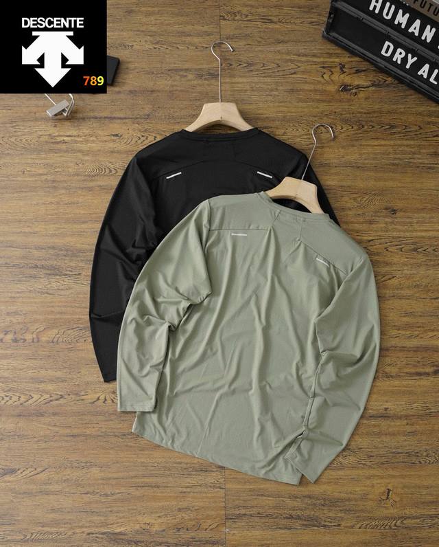 25 Descente's best-selling quick-drying long-sleeved shirt! This Ddd sports long-sleeved shirt is incredibly stylish and versatile, looking neat and capable. The soft and delicate fabric is skin-friendly and comfortable. A great find! Perfect for sports, outdoor training, fitness, daily leisure, and commuting. Comfort is paramount, and this 70S quick-drying combed fabric offers excellent breathability, elasticity, and moisture absorption. Reflective strips add safety at night. It looks amazing on, simple, stylish, and versatile. A must-buy at this price! It's also four-way stretch! Colors: Black, Green. Size: See picture nine.