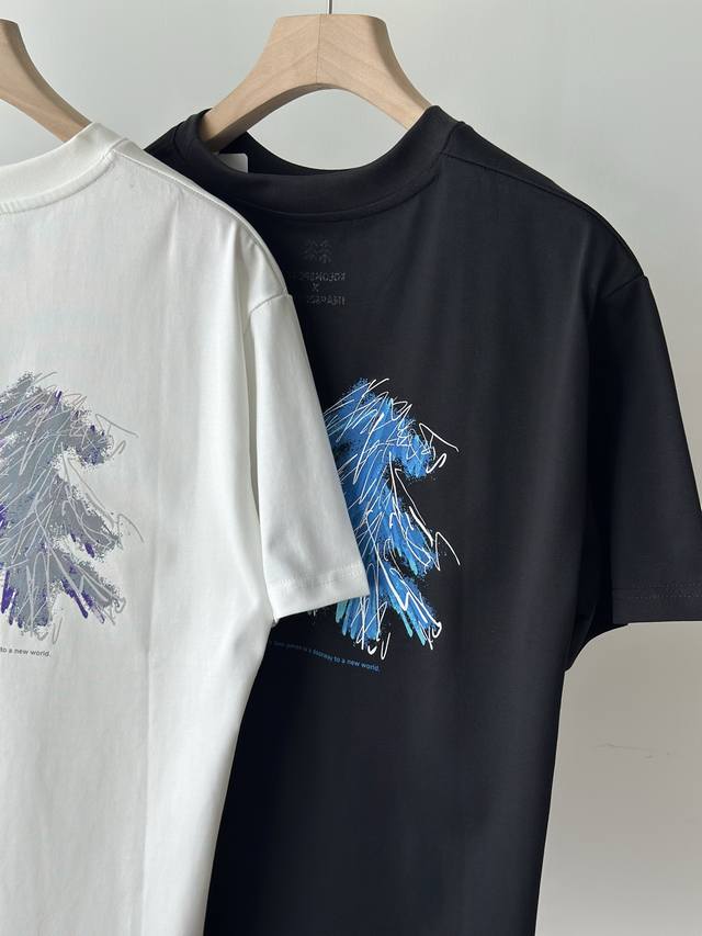 Kolon Sport ink-splashing artist co-branded short 25Ss sleeve round-neck T-shirt, the fabric is made of 40 woven double yarn 320g fabric, original 1:1 high weight, pure cotton ribbed neckline, loose version, and the workmanship details are done to the extreme,
