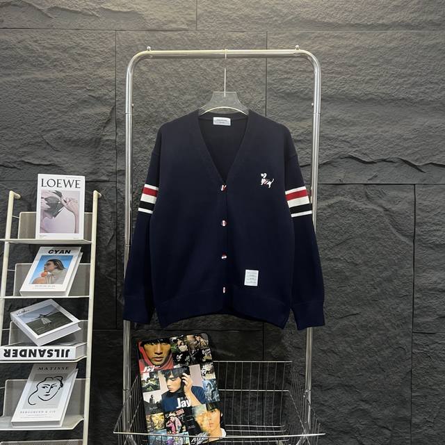 25 New Thom Browne autumn and winter new puppy ribbon V-neck cardigan sweater cardigan jacket!