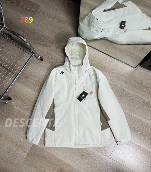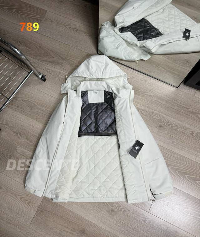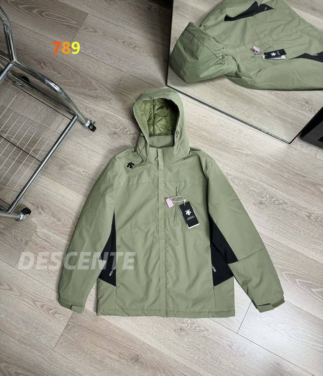 25Ss Autumn/Winter New Descente Waterproof Windproof Warm Quilted Hiking and Mountaineering Jacket with Detachable Hood - DDD Colors: Black, Green, Khaki, Beige DDD Features: 3D tailored, heat-sealed, three-proof fabric, drawstring hood for easy adjustment, detachable hood for more styling options, tight fit for durability, strong windproof, elastic Velcro cuffs to prevent cold air intrusion, and convenient closure. A warm and trendy winter outfit! Ddd solves all your travel concerns, giving you a worry-free journey if you love outdoor travel and adventure. Highly breathable: Double warp and double weft IP40 waterproof rating, windproof and rainproof.