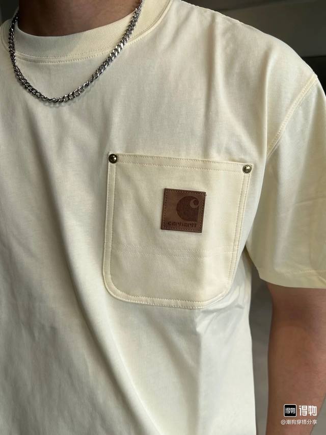 Carhartt Wip Fw25 SS Eldon Pocket T-Shirt Loose chest pocket logo letter round neck chest leather label short-sleeved T-shirt 25 years new style for men and women