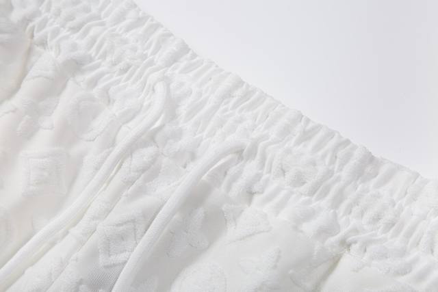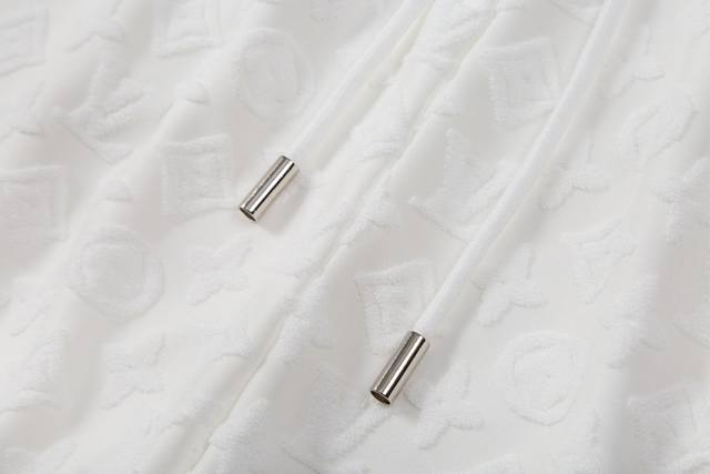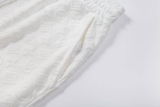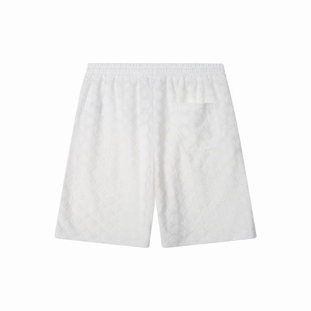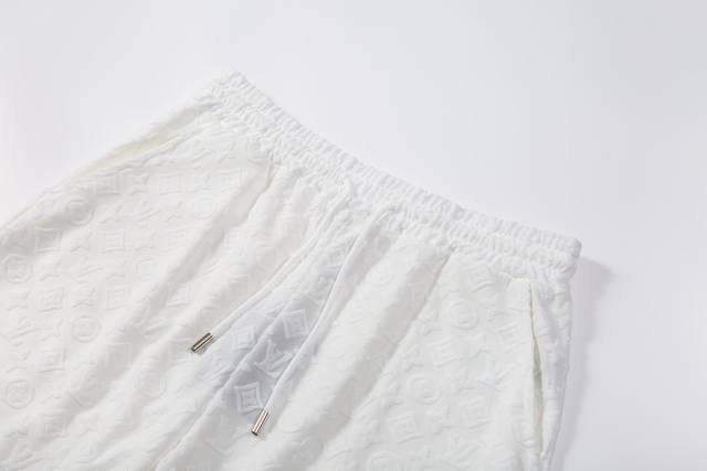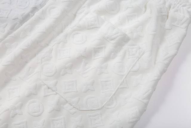 5001, high-end custom-made, exclusive top-quality version of L* brand jacquard terry cloth logo shorts. Utilizing exclusive custom jacquard knitting technology, custom-woven and dyed in the same vat with no color difference in the ribbing, custom 1:1 accessories, complete with all three labels, oversized loose fit, exquisite and perfect workmanship, soft and comfortable fabric that does not deform, unisex style, different from other market versions, specializing in high-end, top-quality goods, welcome to compare quality. Sizes: Xs, S, M, L; Colors: Black, White.