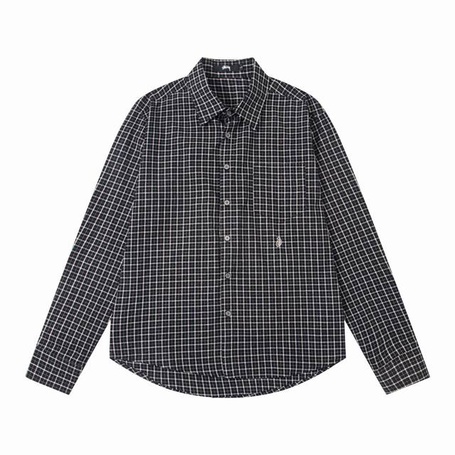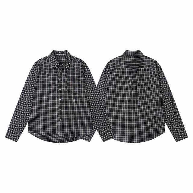 5091# Stussy classic curly letter plaid lapel long-sleeved shirt 25 summer new s