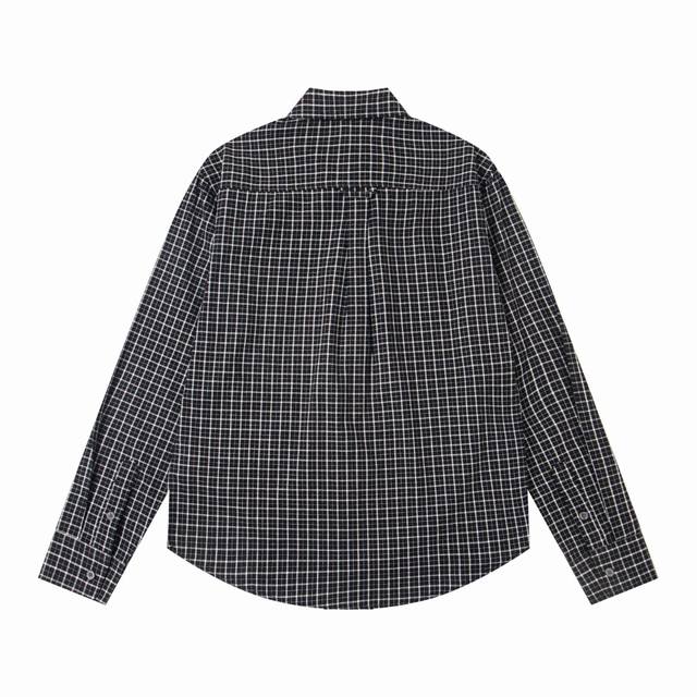 / 5091# Stussy classic curly letter plaid lapel long-sleeved shirt 25 summer new s