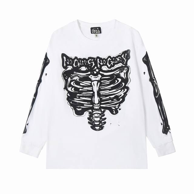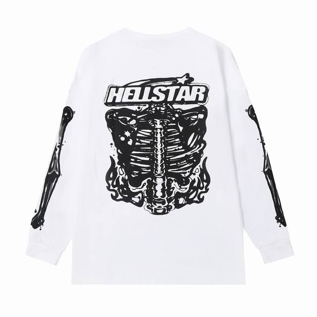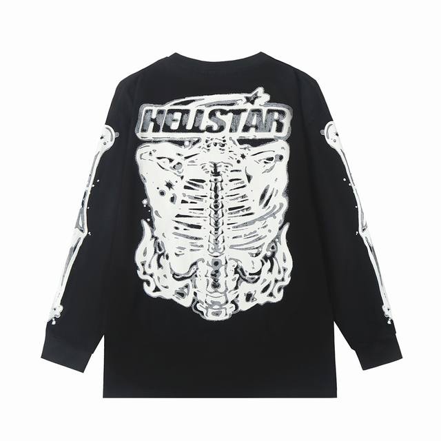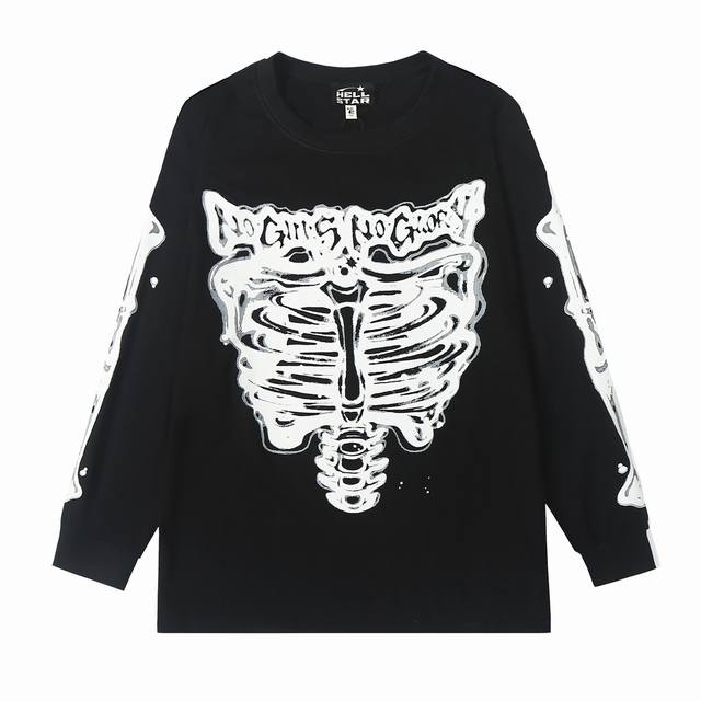 5505# Ins Same Style European and American Trend Hell Star Letter Print Lightning High Street Men and Women Hip Hop Loose Long Sleeve T-Shirt