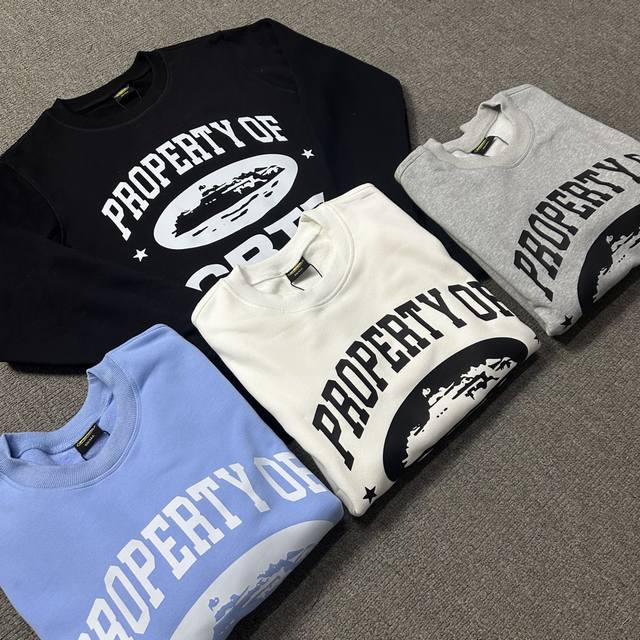 6113# Corteiz Crew Neck Sweatshirt, Five-line Precision Finish, Ddd, Black, White, Sky Blue, Gray, S, M, L, XL, DDD