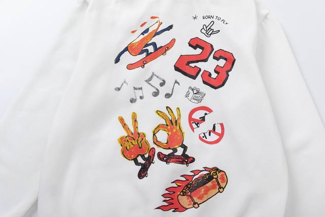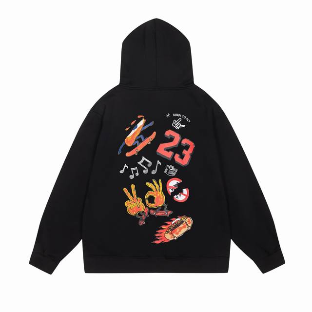 665#Aj flying man plus velvet sweater black and white M-Xxl