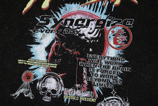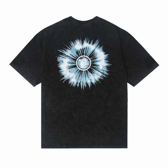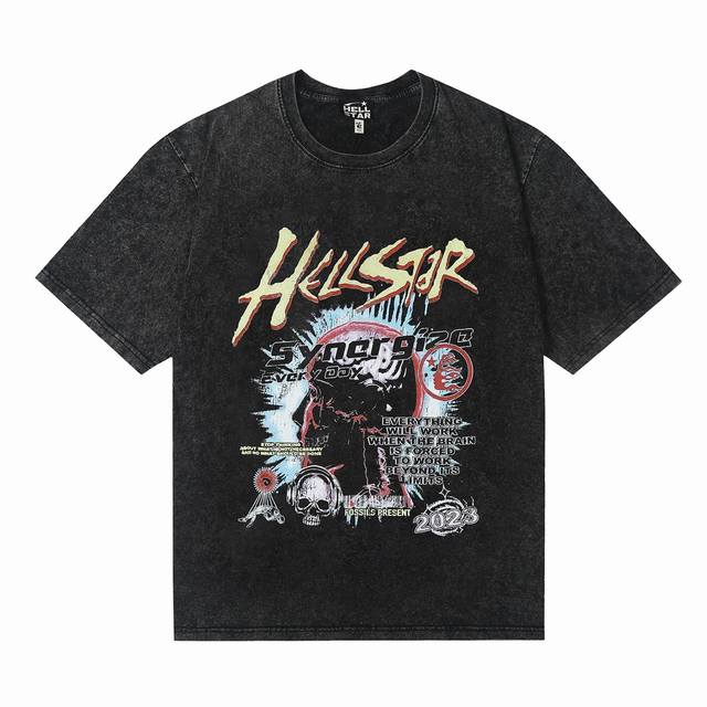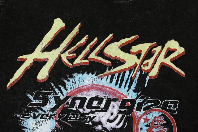 7713# Washed Hellstar Hell Star Ins Same Style Retro Print Tops Men's and Women's Casual Trend Pure Cotton Washed Short Sleeve T-Shirt Color: Black Size: SML Xl