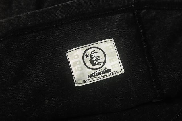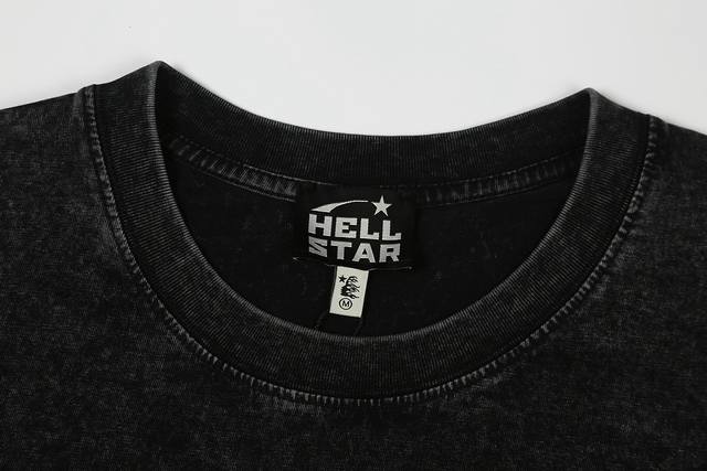 7739# Washed Hellstar Hell Star Ins Same Style Retro Print Tops Men's and Women's Casual Trend Pure Cotton Washed Short Sleeve T-Shirt Color: Black Size: SML Xl