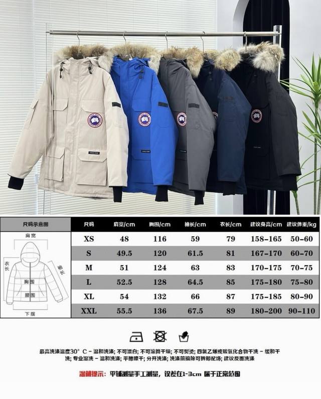 ) Colors: Black, Off-white, Pink (no XL/XL), Navy, Graphite Grey with red label, Graphite Grey with black label! 6 colors available. Sizes: Xs, S, M, L, XL, XXL. Materials: 1. Imported Y-shaped Velcro. 2. 18-count polyester-cotton blend fabric. 3. Standard 80% white duck down. 4. Wolf fur. Size chart and recommended sizes are in the last picture.