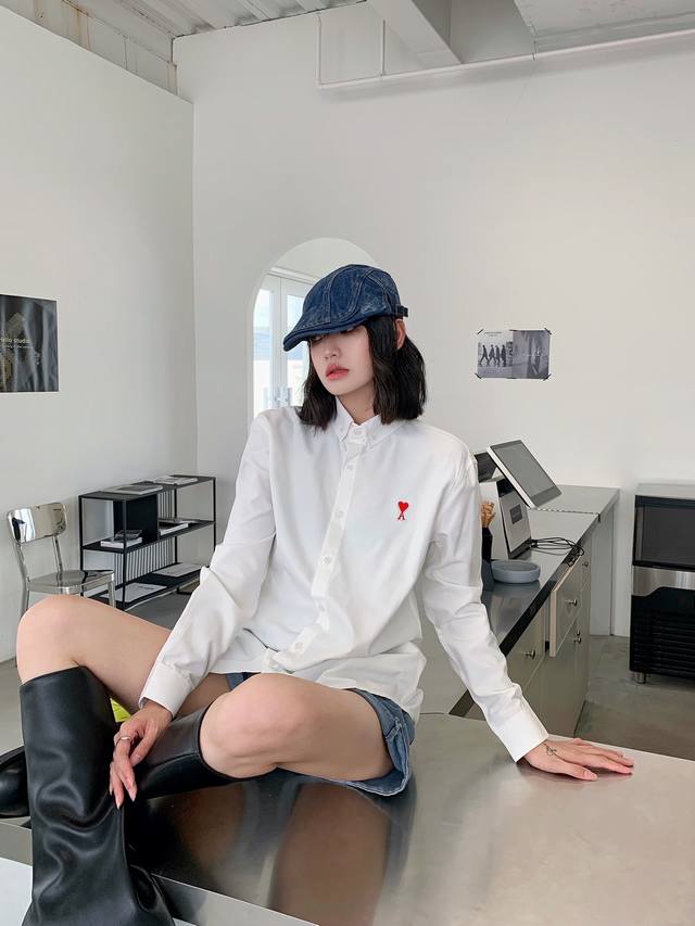 / 802#Ami Paris Love Heart Solid Color Shirt 1:1 Custom Unisex Style Available Now