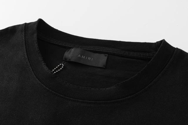 8067#, Amiri logo distressed hand-painted finish, made of 300g fabric, color: black, sizes: S, M, L, X, D.