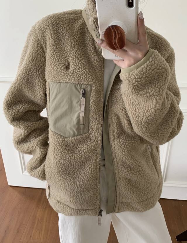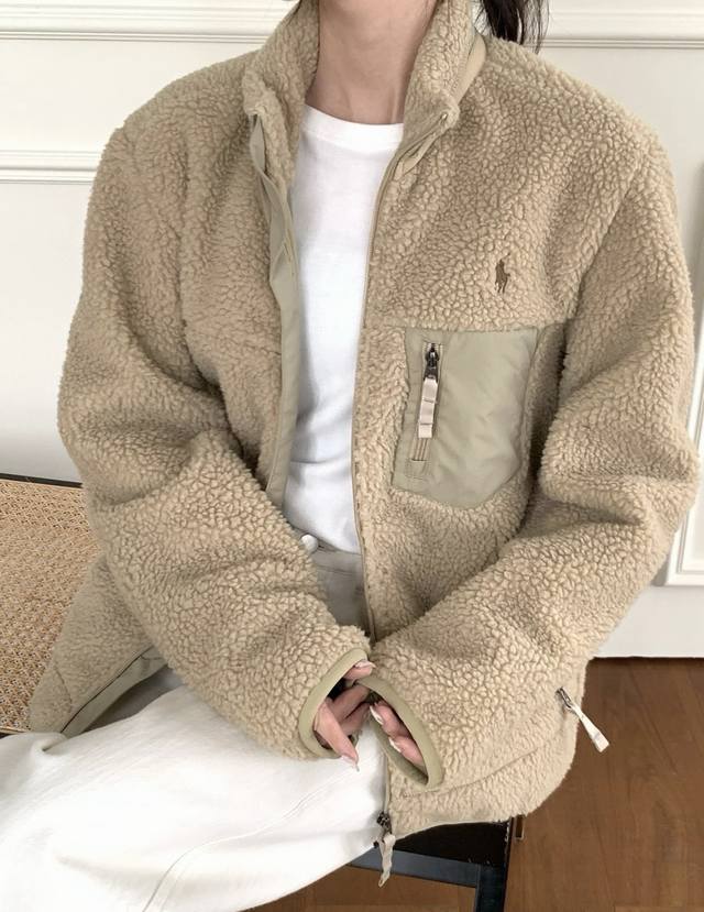 8120 Ralph Lauren lamb wool coat, classic Miu style, so cute! Made with custom eco-friendly fleece fabric, it's so soft and comfortable to the touch. A relaxed, casual oversized silhouette, zip-up windproof turtleneck, and super practical side zippered pockets. Suitable for both men and women. The contrasting embroidered logo on the chest is eye-catching. Custom-molded black zipper and logo zipper pull ornament. Adjustable drawstring hem. The fit is universally flattering. Ralph Lauren lamb wool zip-up stand collar coat. Available in navy, beige, and military green. Sizes: M (Chest 116cm, Length 70cm, Sleeve Length 66cm, Shoulder Width 45cm), L (Chest 120cm, Length 72cm, Sleeve Length 67cm, Shoulder Width 47cm), XL (Chest 124cm, Length 74cm, Sleeve Length 68cm, Shoulder Width 49cm), XL (XXL) Bust 128cm, Length 76cm, Sleeve Length 69cm, Shoulder Width 51cm. Size