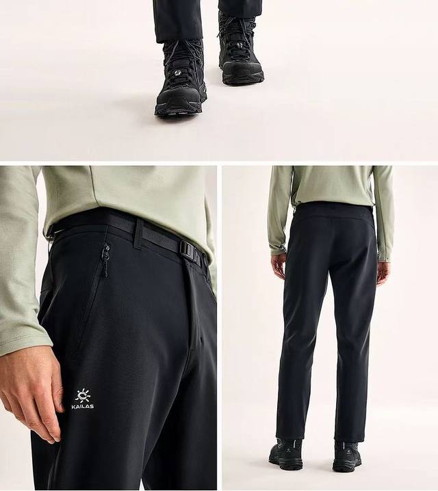 8130 Kailas T11Gtx Windproof Fleece-Lined Warm and Breathable Outdoor Sports Hiking Commuter Softshell Pants, unisex, suitable for both mountain hiking and city commuting. The core of its professional protection comes from the outer Windstopper By Gore-Tex Labs high-tech fabric. The EPTFE membrane with over 1.4 billion micropores per square centimeter forms a smart barrier that prevents liquids from entering while allowing moisture to escape: in light rain, water droplets slide off directly without penetration, and the fully taped seams further eliminate the risk of water seepage. Even in sudden showers during mountain hiking, the pants remain dry. The dense weave combined with the membrane's properties effectively blocks cold wind penetration, locking in body heat even in strong winds in mountainous environments. Even more remarkable is its outstanding breathability; sweat produced during exercise can quickly escape through the micropores, preventing stuffiness and stickiness. The secret to warmth without bulkiness lies in the skin-friendly 3D checkered fleece lining. The fluffy fleece layer acts like a portable "mobile warm cabin," achieving efficient heat retention without the need for heavy padding. Its soft, warm touch against the skin eliminates the bulkiness and constraints of traditional cotton pants. From casual hiking in the suburbs to the comfortable ease of light outdoor camping, the Kailas T11Gtx softshell pants break down the barriers between outdoor and work pants with their all-around performance of "professional-grade protection + everyday comfort." Enjoy the freedom of the outdoors and the sophistication of the city with a warm yet not bulky, windproof yet sweat-proof, and flexible yet unrestricted experience. Ddd Dark Blue/Black: Sizes 30-32-34-36-38. Recommended sizes: Under 170cm, 80-120kg, size 30; 170-175cm, 120-140kg, size 32; 175-180cm, 140-160kg, size 34; 180-185cm, 160-180kg, size 36; 185-190cm, 180-200kg, size 38.