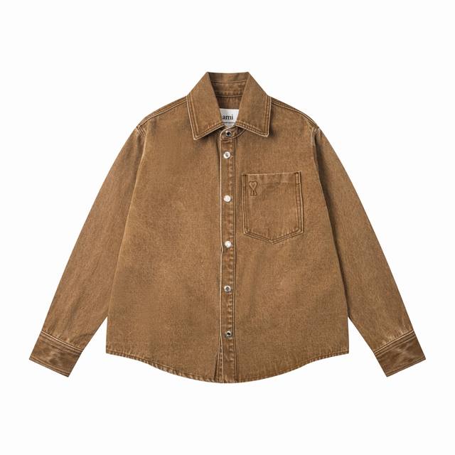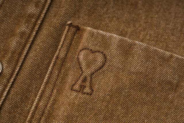 857#Ami Retro Heart Denim Jacket Ddd Official website quality restored with full attention to detail, custom hardware buttons, loose fit, versatile and easy to wear, unisex style Ddd Colors: Denim Blue, Chestnut Ddd Sizes: S, M, L, XL Ddd DDD
