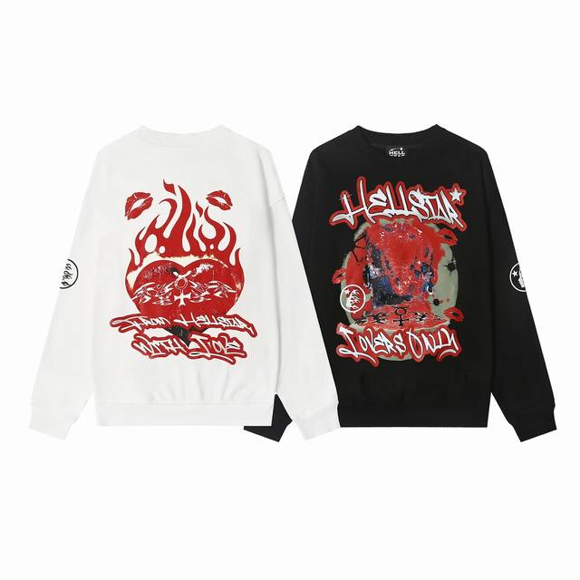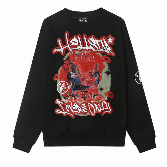 8802# Hellstar High Quality American Style Printed Cotton Terry Round Neck Sweat