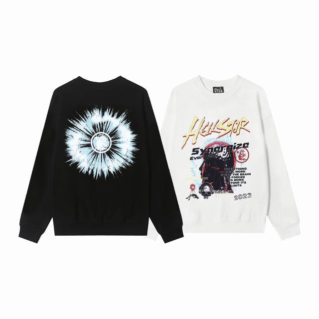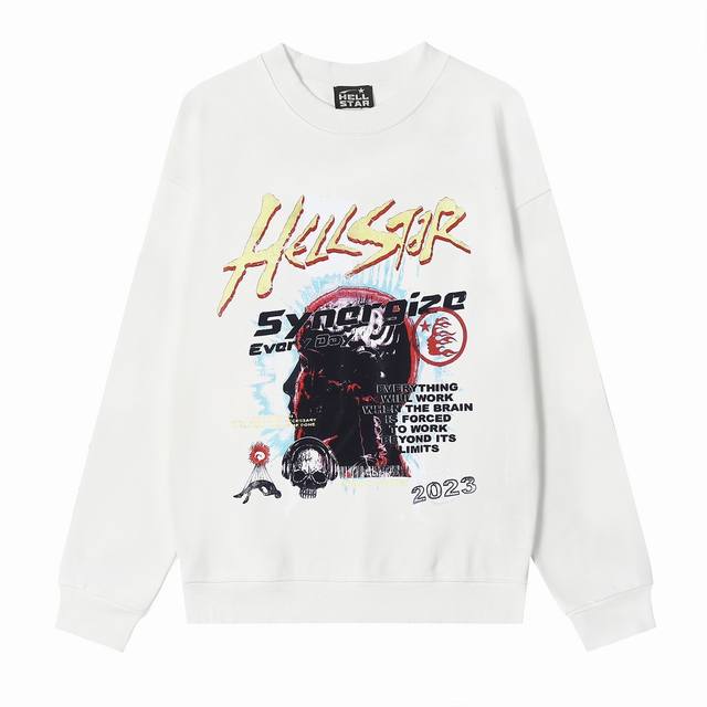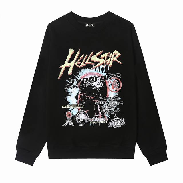 8821# Hellstar high quality American style printed cotton terry round neck sweatshirt Color: White Black Size: SML Xl