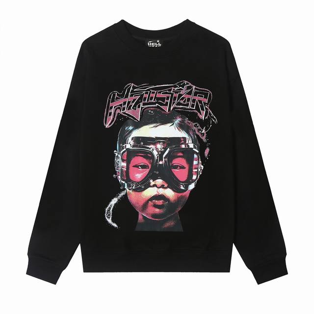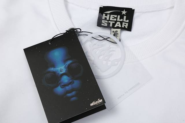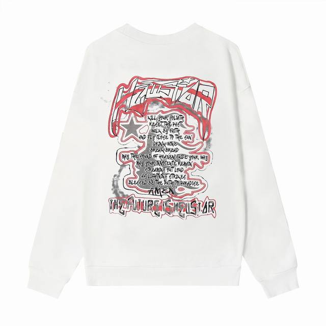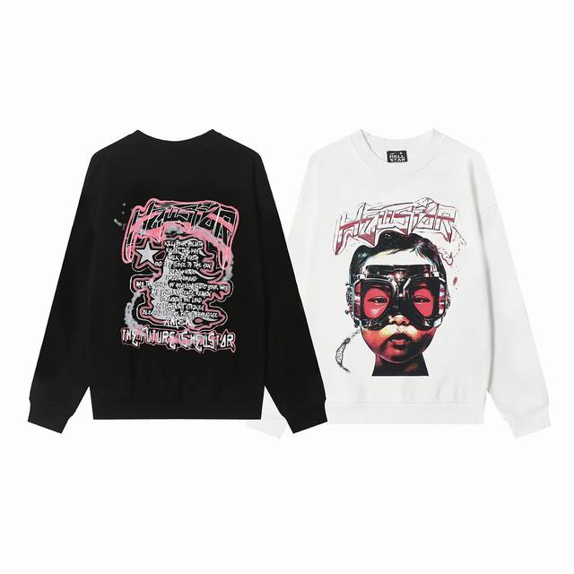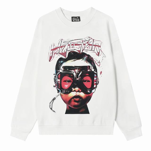 8827# Hellstar High Quality American Style Printed Cotton Terry Crew Neck Sweatshirt Color: White Black Size: SML Xl