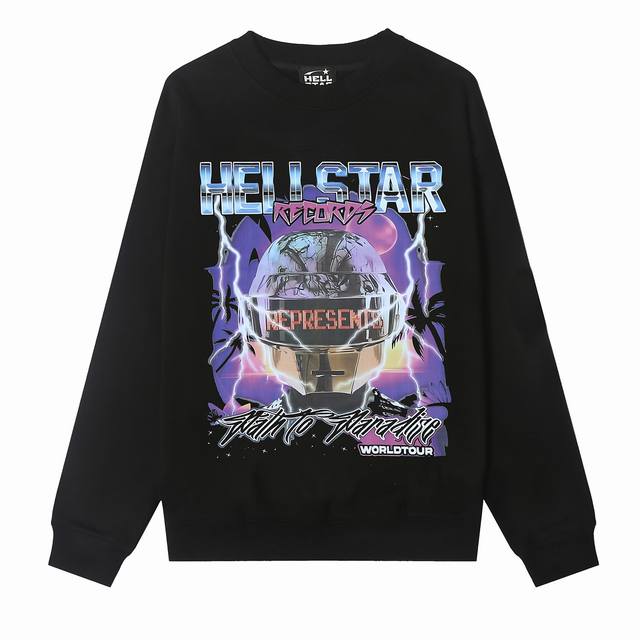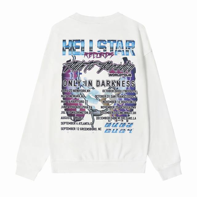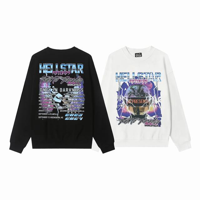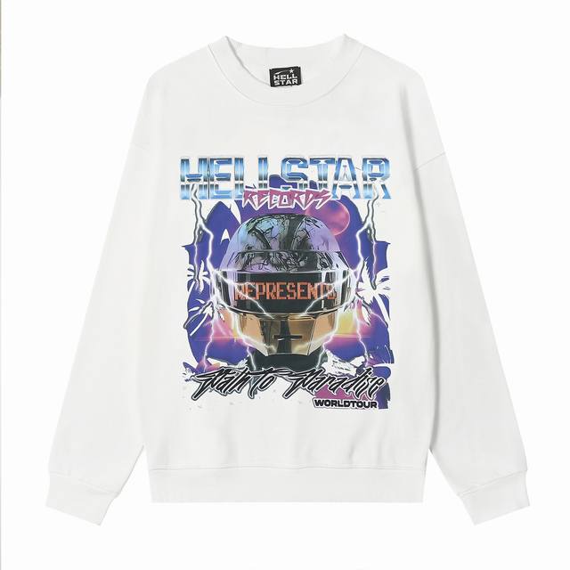 8829# Hellstar High Quality American Style Printed Cotton Terry Crew Neck Sweatshirt Color: White Black Size: SML Xl