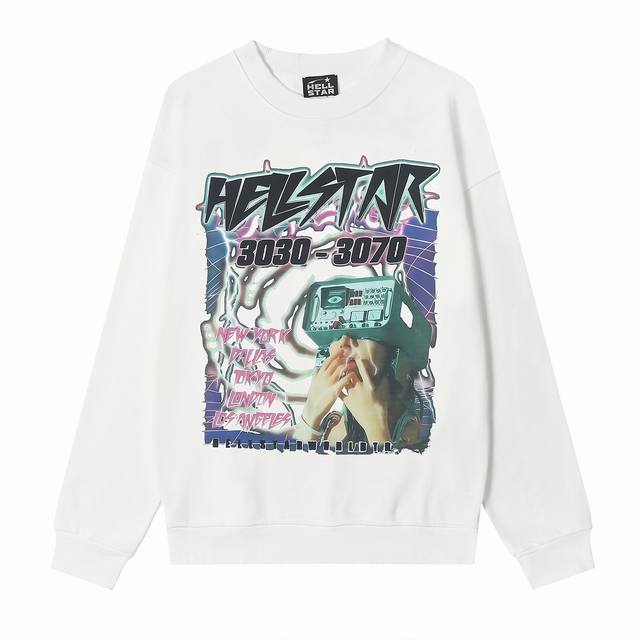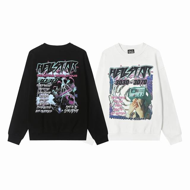8831# Hellstar High Quality American Style Printed Cotton Terry Crew Neck Sweats