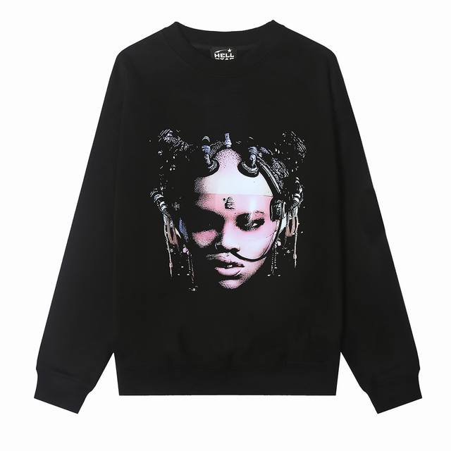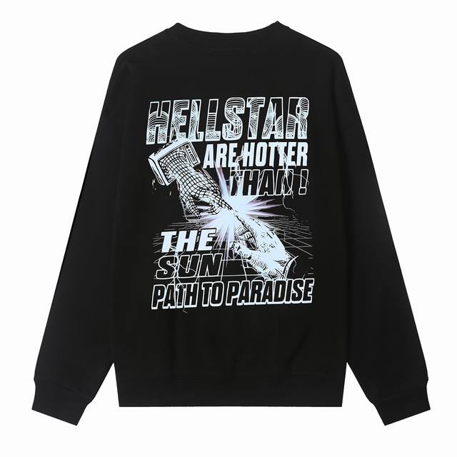 8838# Hellstar High Quality American Style Printed Cotton Terry Crew Neck Sweatshirt Color: Black Size: SML Xl
