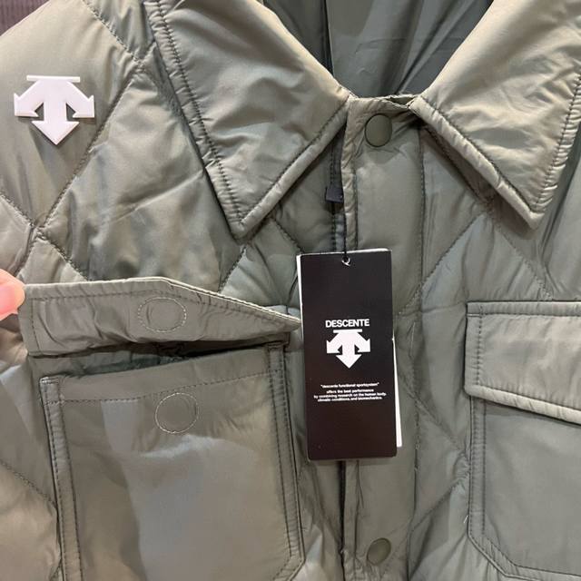 90% Down Ddd Descente Descente Lapel Design Shirt Style Lightweight Down Jacket Coat, Fluffy and Soft DDD Diamond Pattern Design for Better Down Locking, Filled with 90% National Standard White Duck Down, featuring large down clusters, small feather tufts, high loft, excellent compression resilience, and all-around temperature locking for warmth and even heat retention! DDD Unique Small Lapel Design, Magnetic Snap Pocket on Chest, Loose Fit, Pairs with Sweater or Sweatshirt for a Casual and Youthful Style! DDD Colors: Khaki, Green, Black DDD