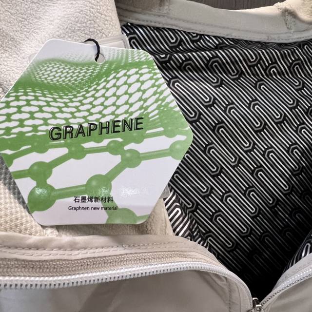 This down jacket's inner lining is specially selected with high-tech **graphene fabric**, which has significant performance advantages compared to ordinary printed versions. **Graphene**, as a new type of material, has **antistatic, UV protection, heat locking, and self-heating functions**, providing all-round protection for cold outdoor environments. It not only has outstanding warmth performance but also effectively resists ultraviolet radiation, allowing the wearer to remain comfortable in extreme conditions.